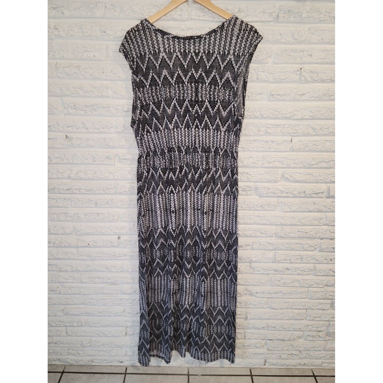 Faded Glory Womens Dress Extra Large XL Sheath Maxi Sleeveless Geometric Black