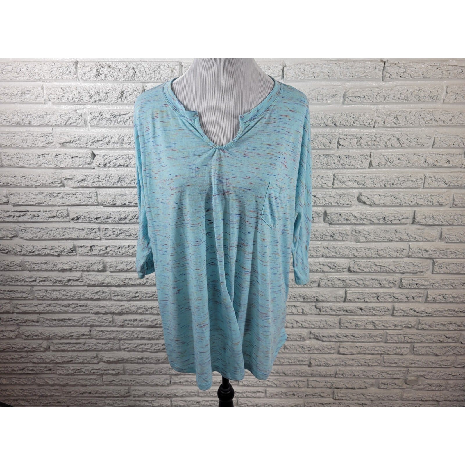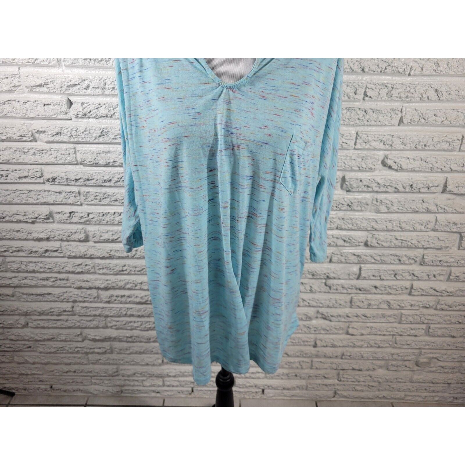 Faded Glory Womens Top 2X Plus Dolman 3/4 Sleeve Blue Heather Poly Blend Casual