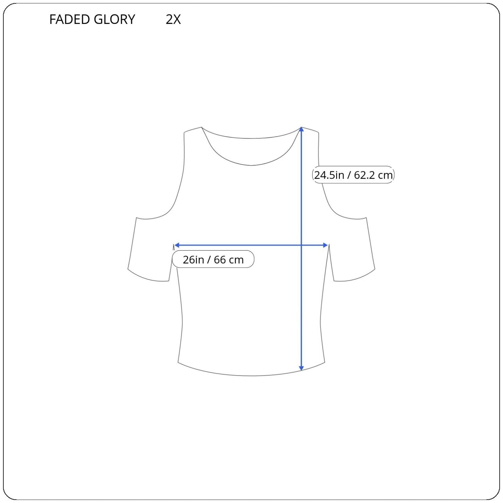Faded Glory Womens Top 2X Tee Cold Shoulder Poly Blend Blue Stripe Clear Sequins