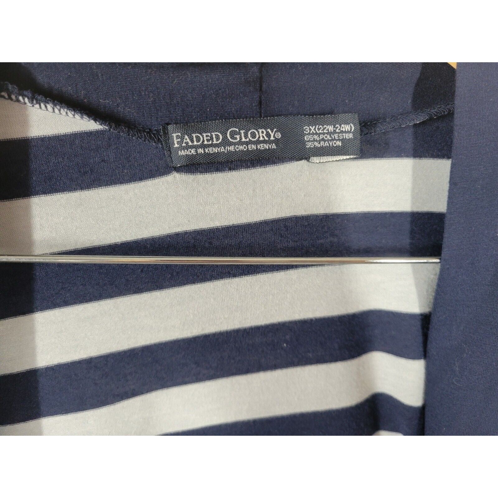 Faded Glory Womens Top 3X Cardigan Open Roll Tab 3/4 Sleeve Blue Stripe Pockets