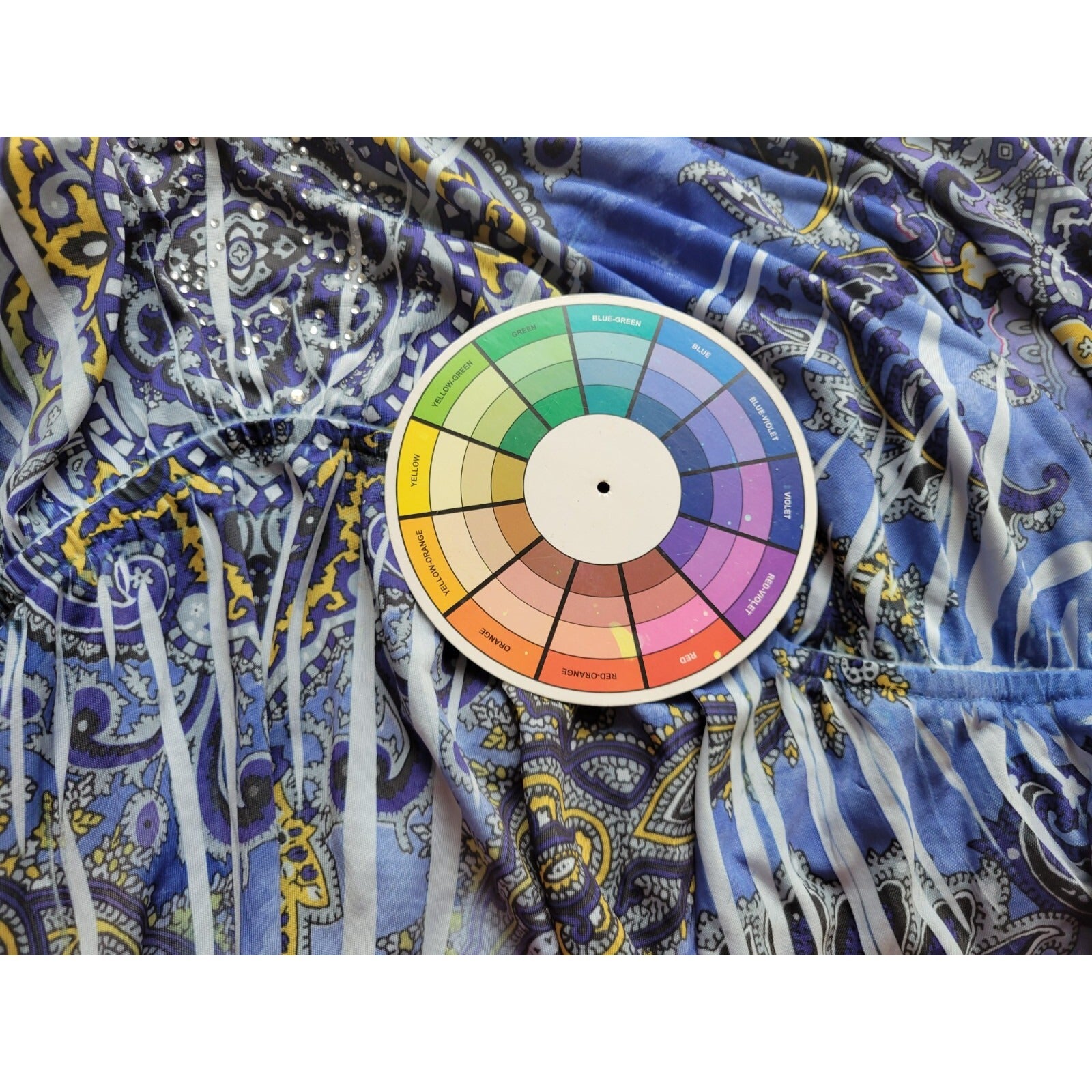 Elevate your casual wardrobe with this stunning Faded Glory tunic blouse. The blue paisley pattern adds a touch of elegance to this versatile blouse, perfect for any occasion. The 3/4 sleeves and V-neckline provide a flattering fit, while the pullover closure ensures easy wear.   This blouse is made of a polyester blend material, stretchy and suitable for all seasons. The laser cut design adds a unique touch, and the rhinestone accents give it a sparkling finish. This tunic blouse is machine washable, making it easy to care for. Add this stylish piece to your wardrobe today!