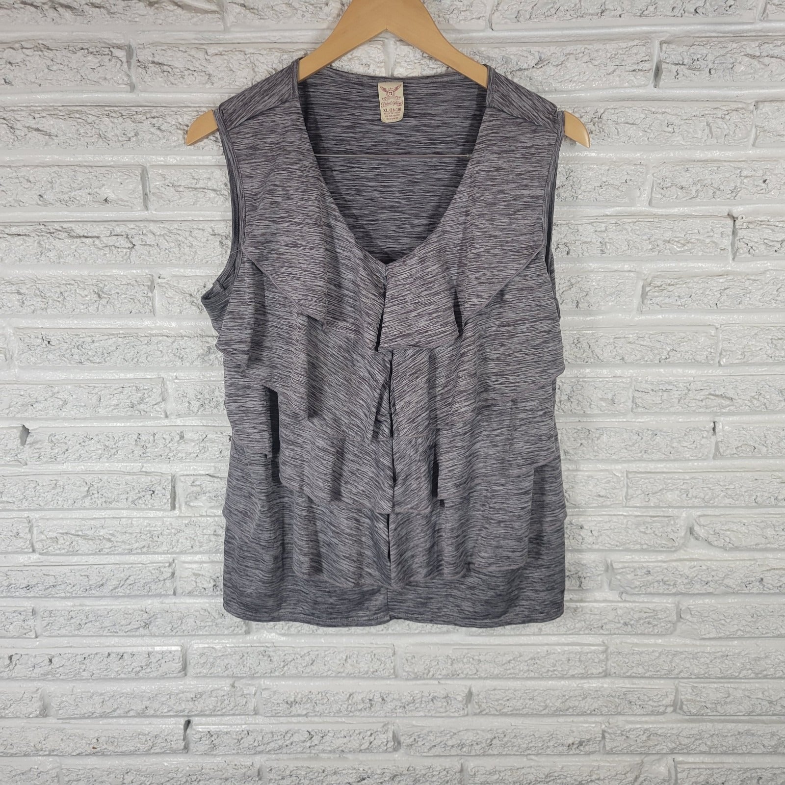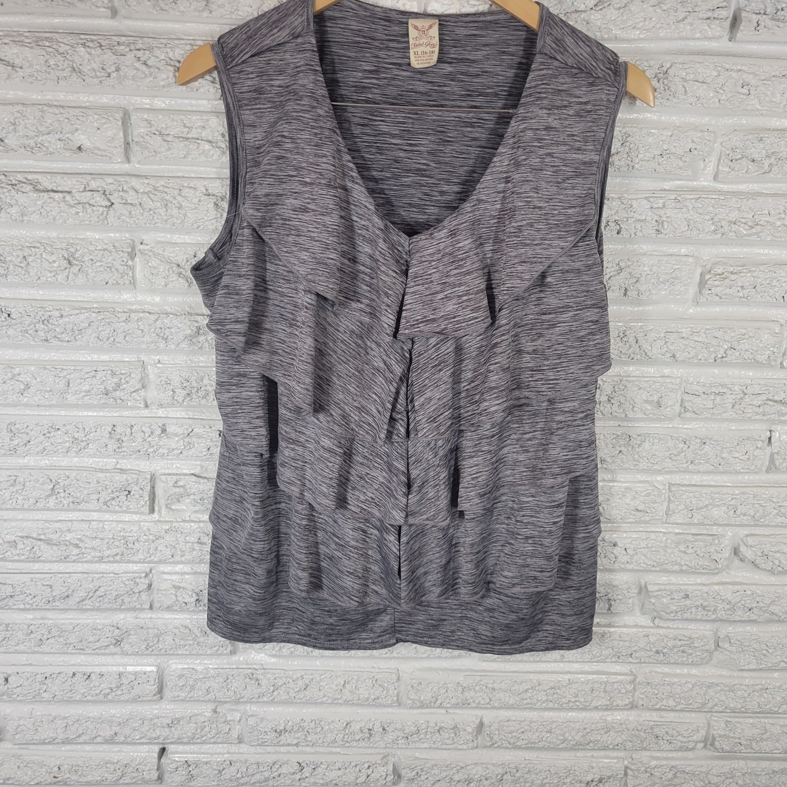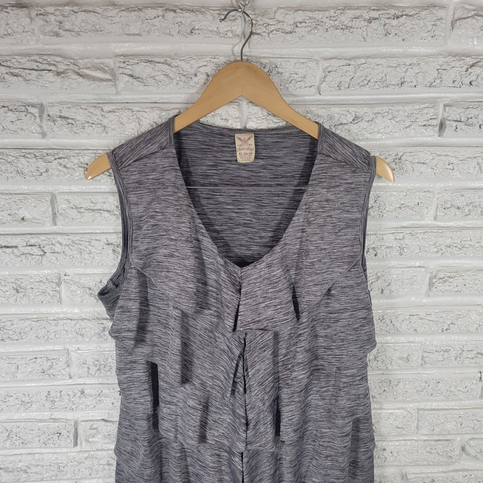 Faded Glory Womens Top XL 16 18 Sleeveless Gray Heather Tiered Poly Blend Ruffle