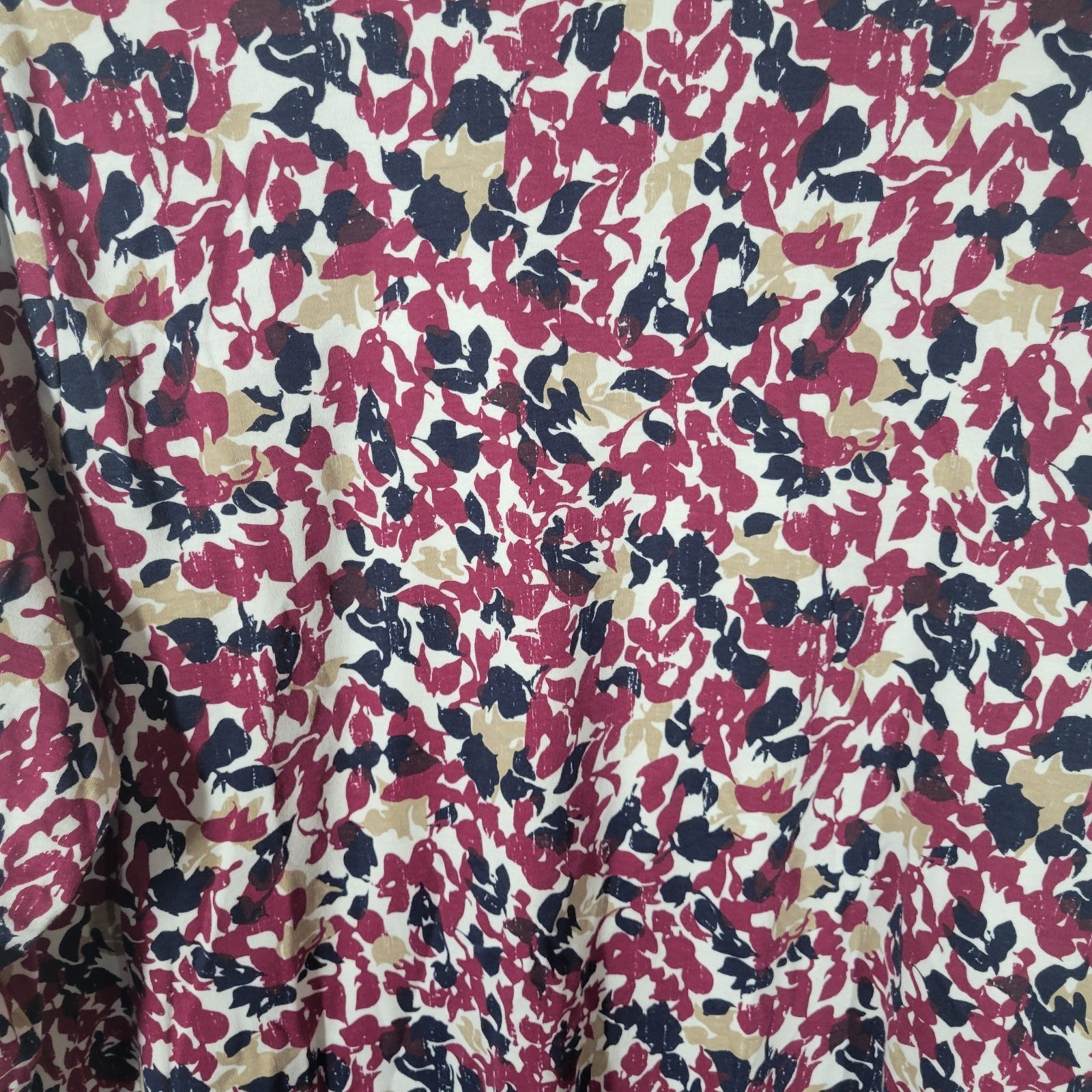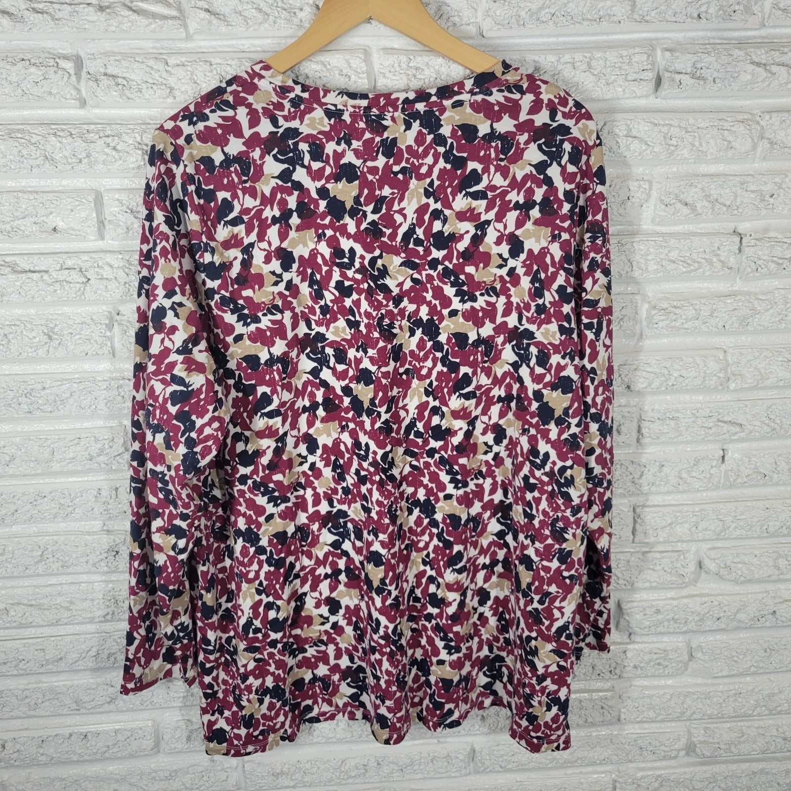 Falls Creek Womens Top 3X Plus Tee Long Sleeve Burgundy Floral Cotton Blend