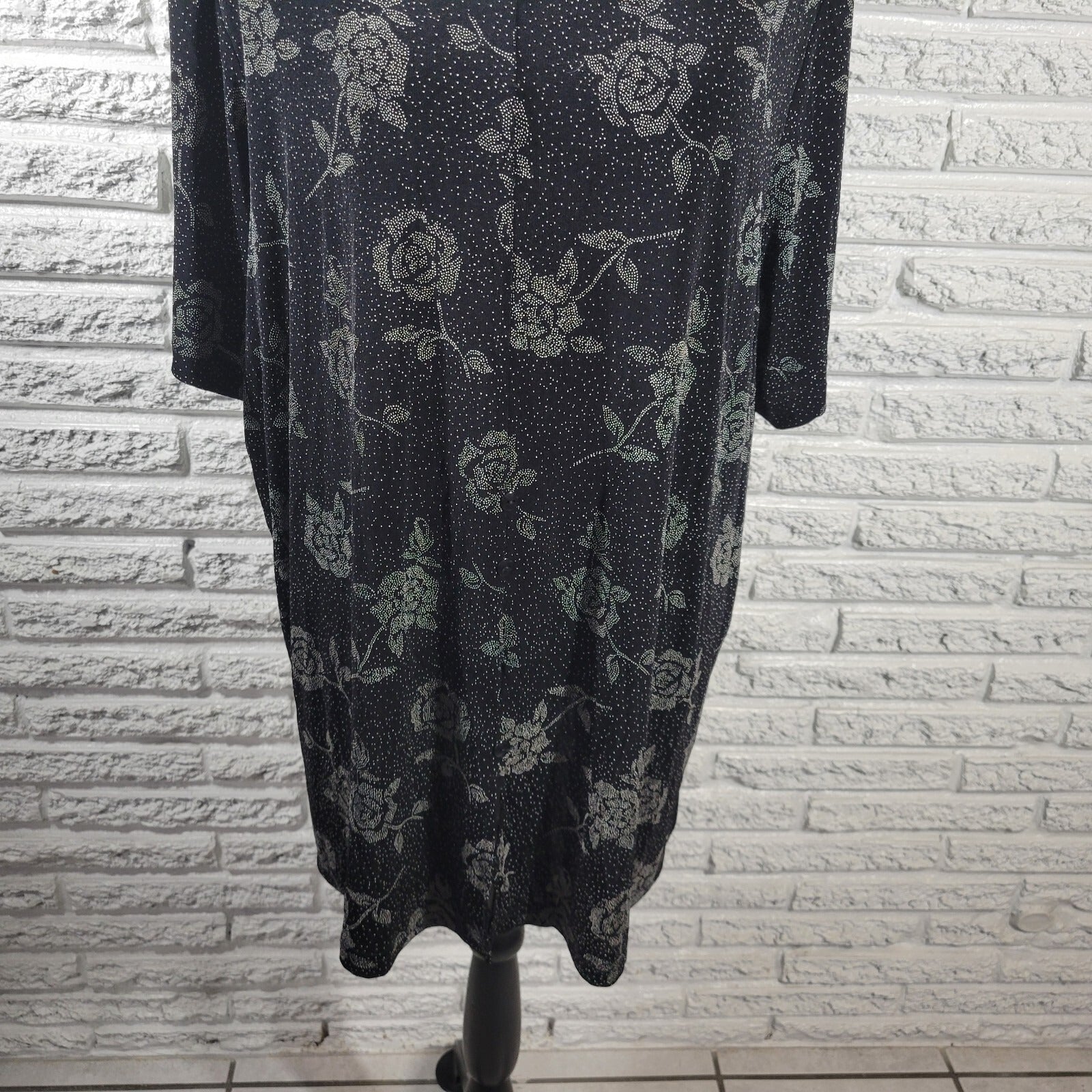 Fashion Bug Women Top 2X Plus Short Sleeve Black Floral Lightweight Party Career
