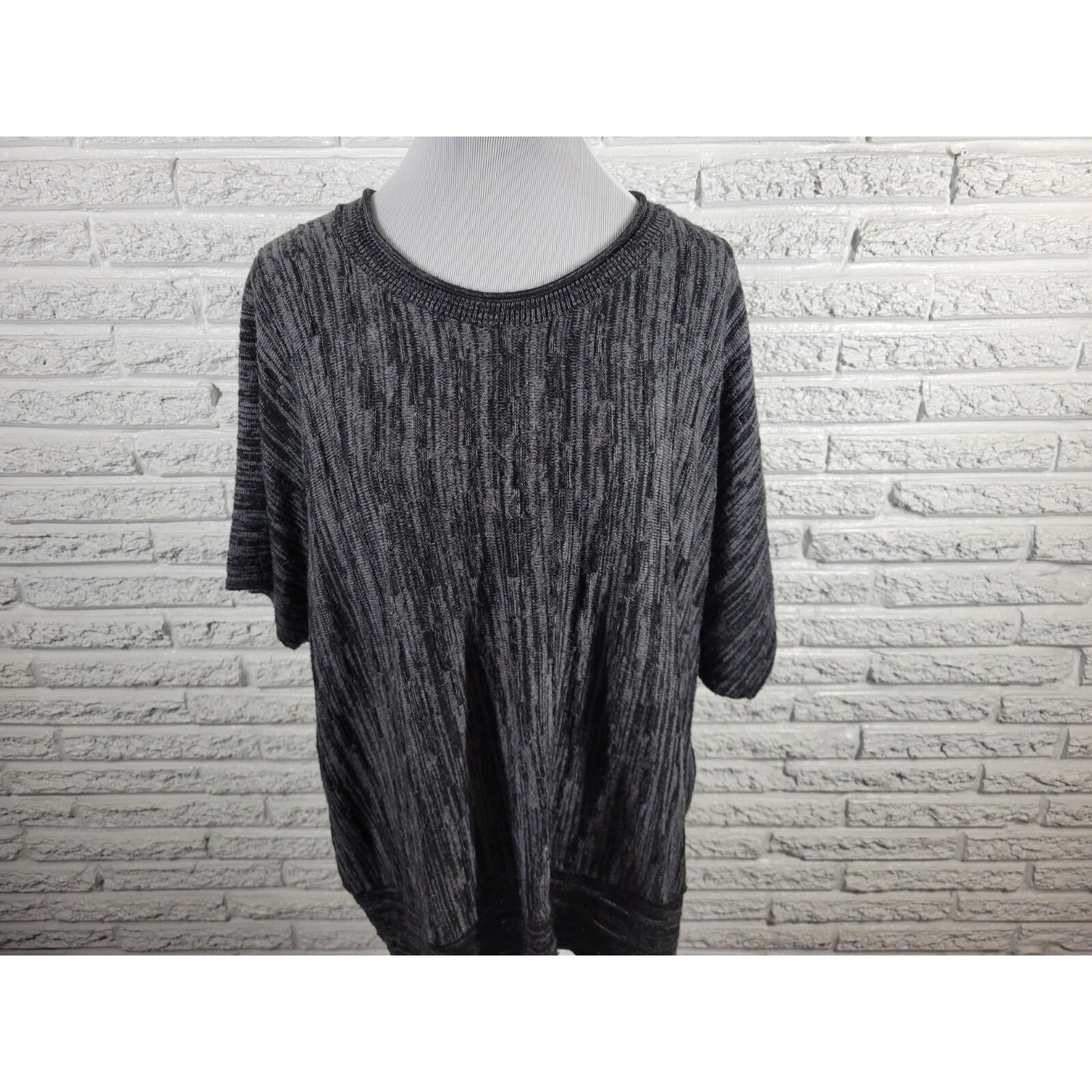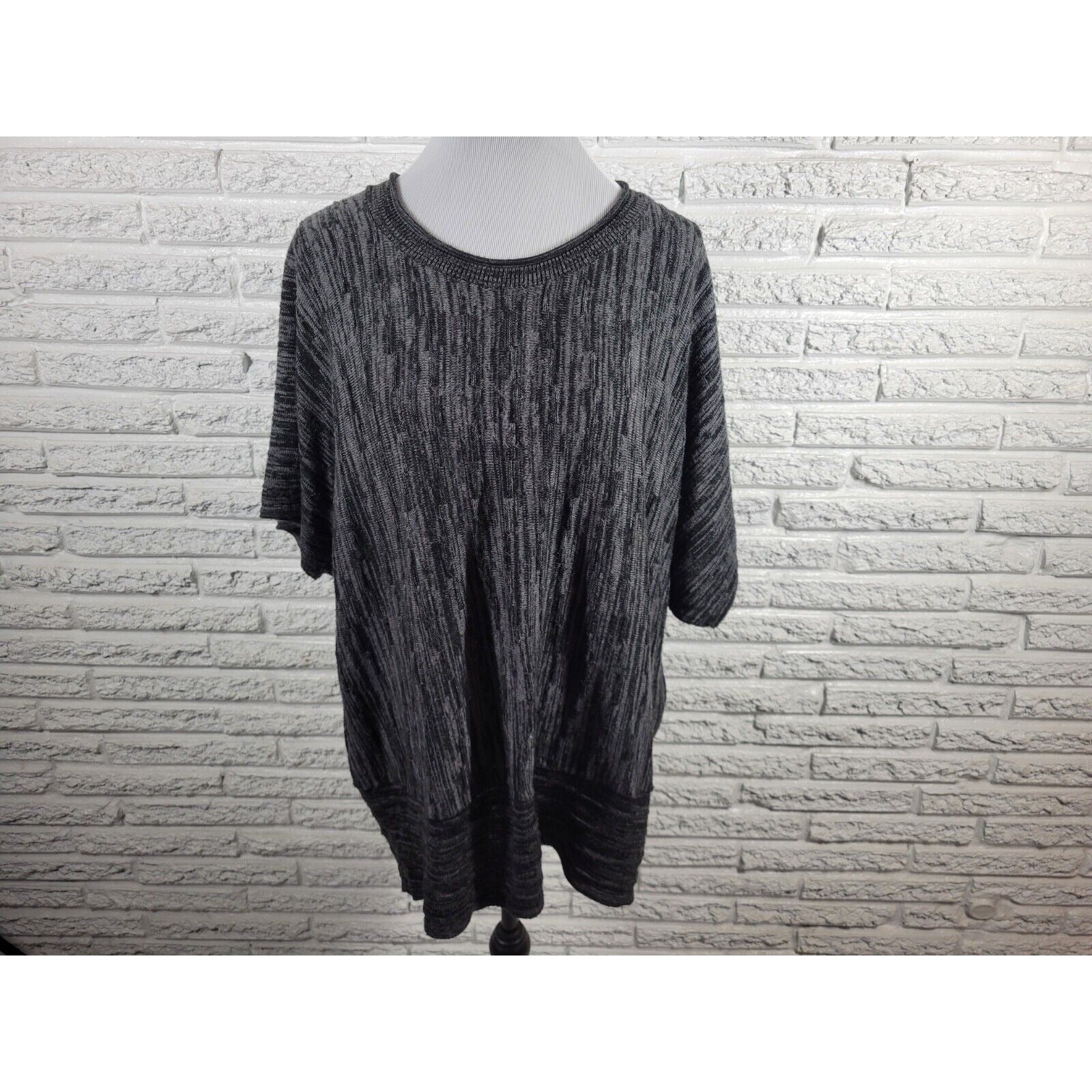 Fashion Bug Womens Sweater 3X Plus Short Sleeve Black Marled Acrylic Stretchy