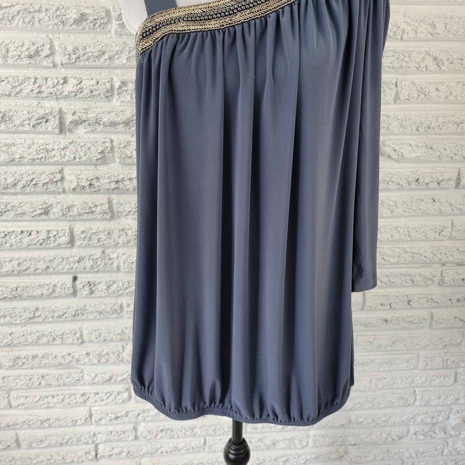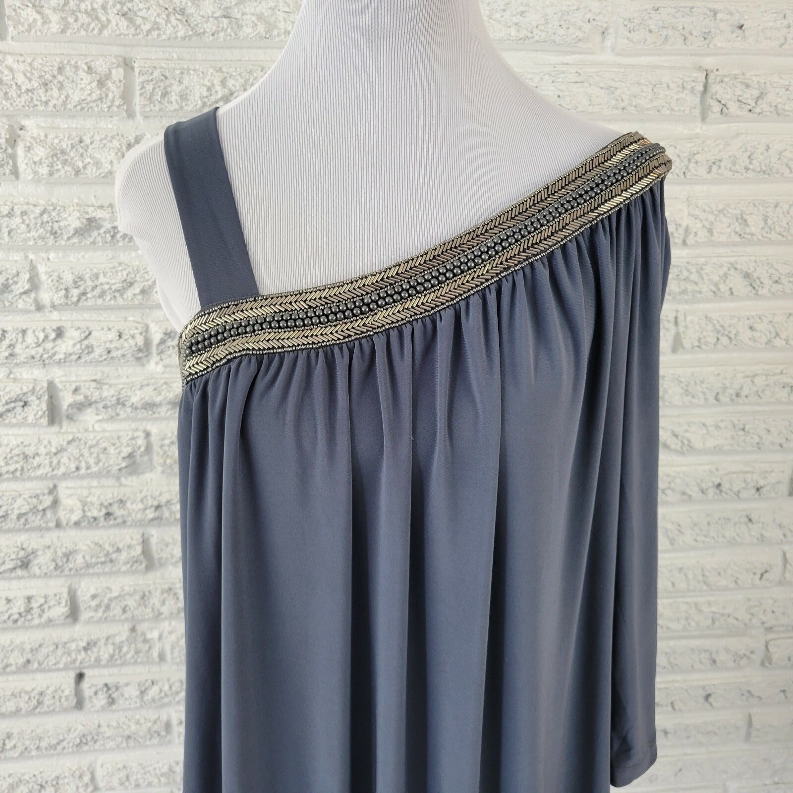 Fashion Bug Womens Top 0X Plus One Shoulder Studded Peplum Pullover Beaded Gray