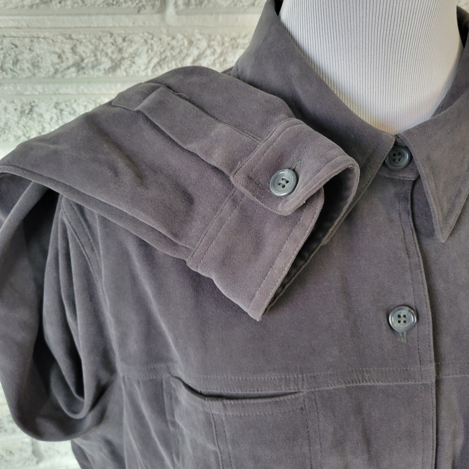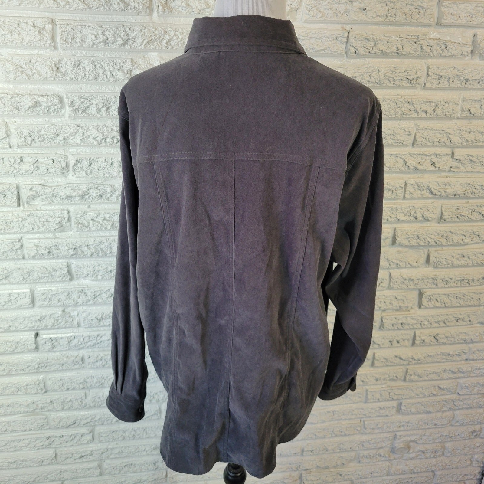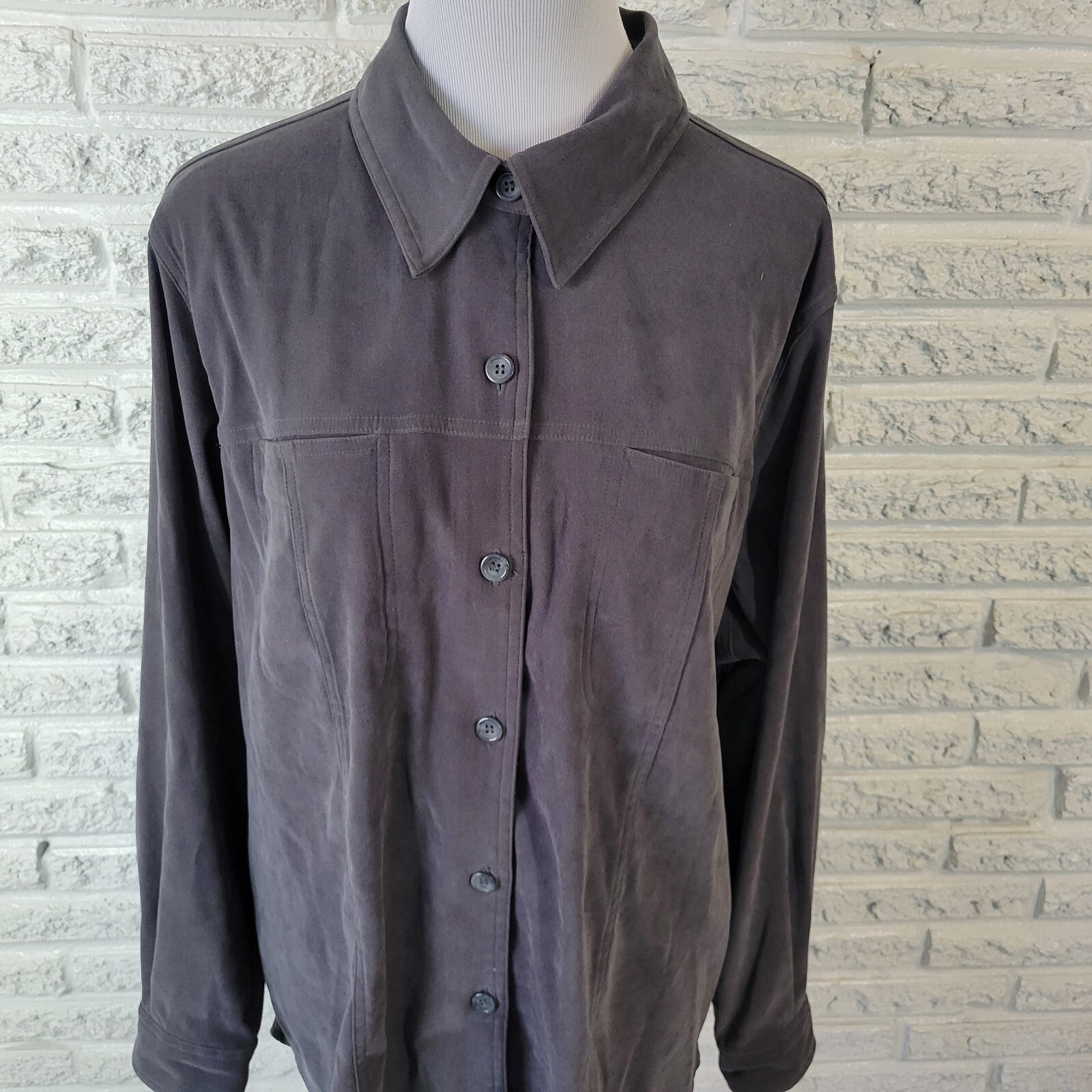 Fashion Bug Womens Top 18 20 Plus Shacket Gray Velour Pockets Poly Blend Collar