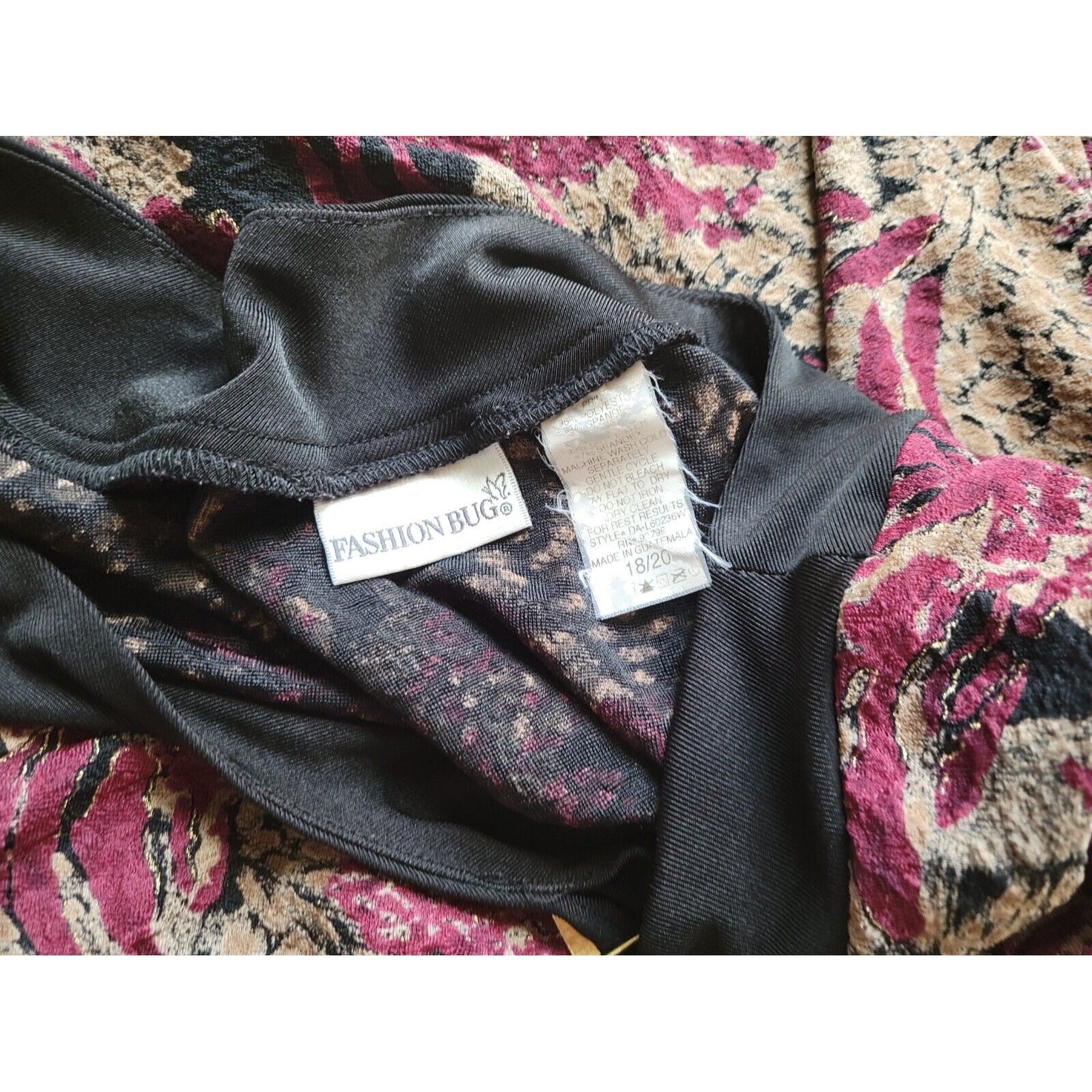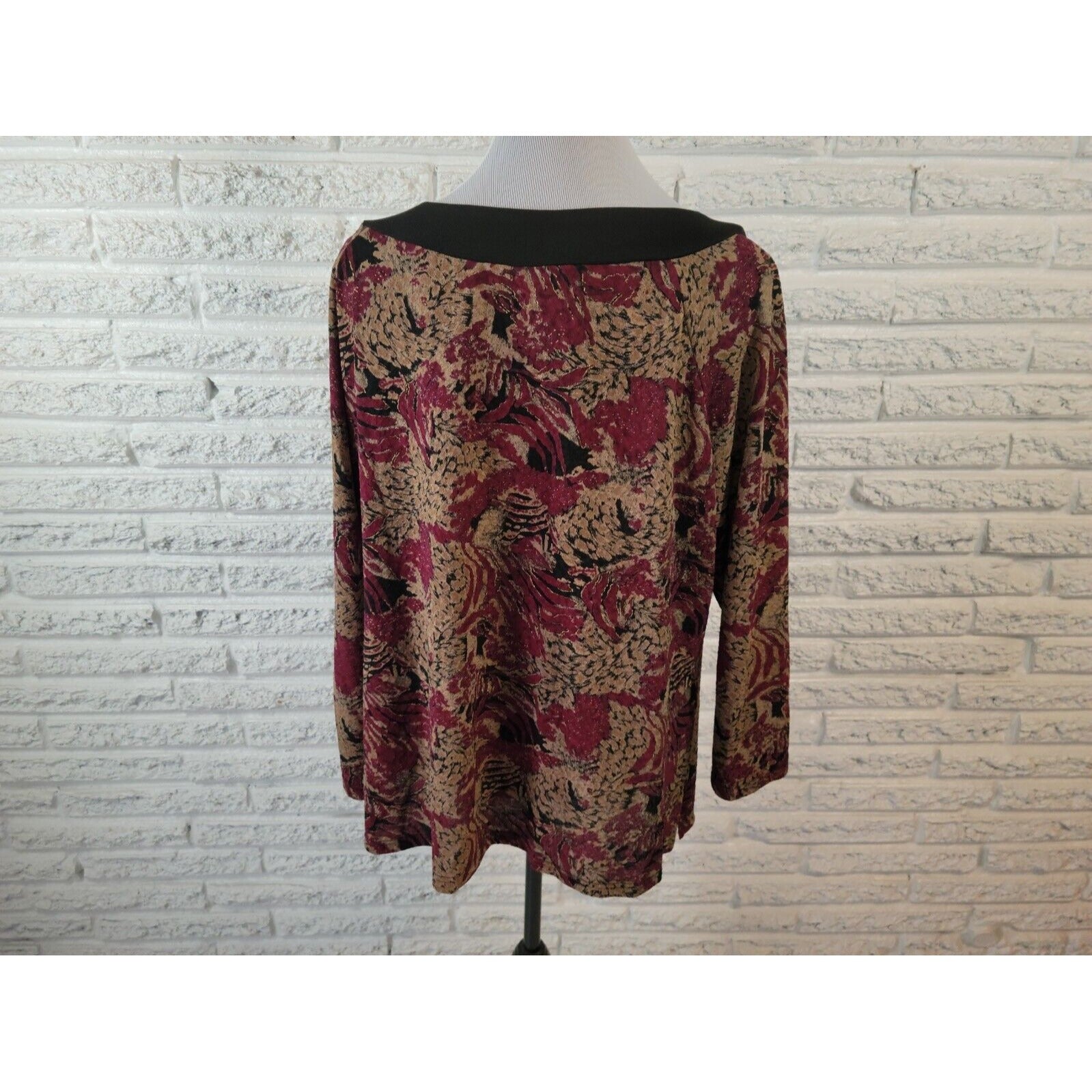 Fashion Bug Womens Top 18 20 Pullover Long Sleeve Poly Blend Burgundy Floral