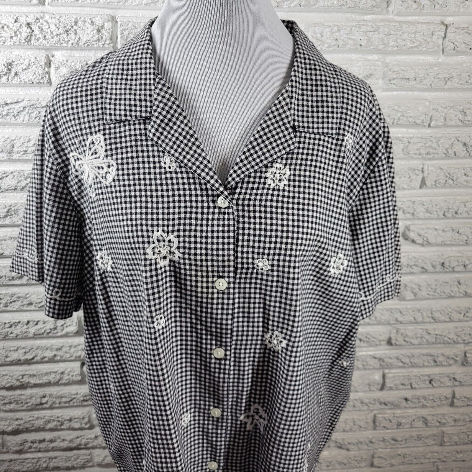 Fashion Bug Womens Top 22W 24W Button Butterflies Lightweight Flower Black Plaid
