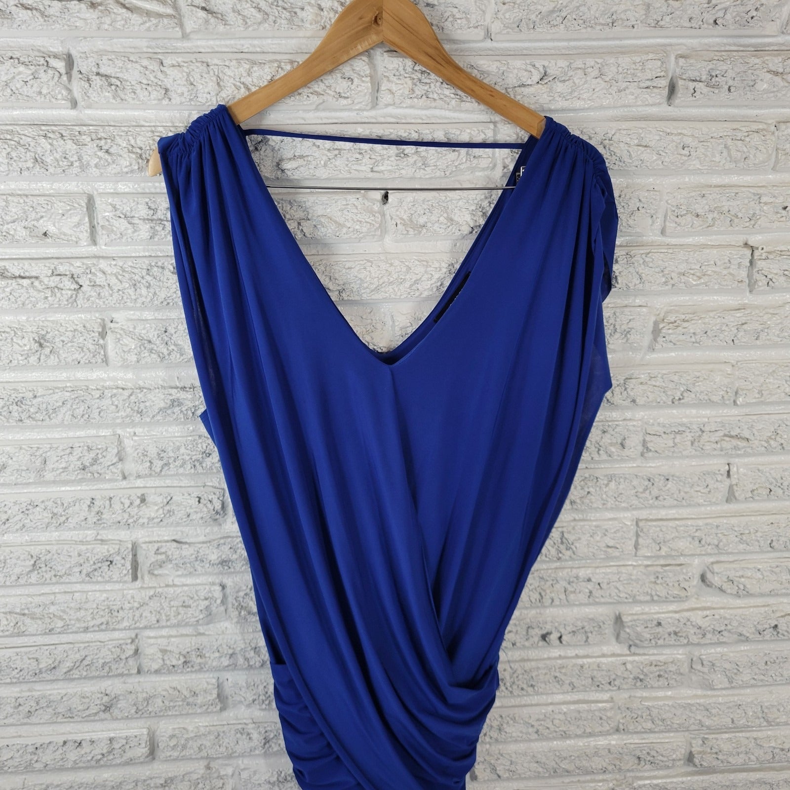 Fashion to Figure Women Dress 3X Plus Bodycon Party Ruched Mini Blue Window Back