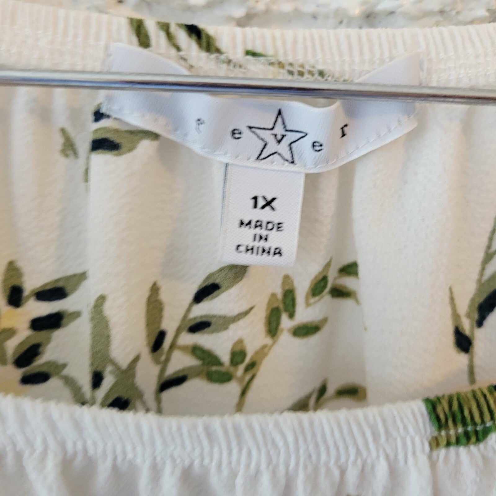 Fever Womens Top 1X Plus Double Bell Sleeve Pink Green Floral On Off Shoulder