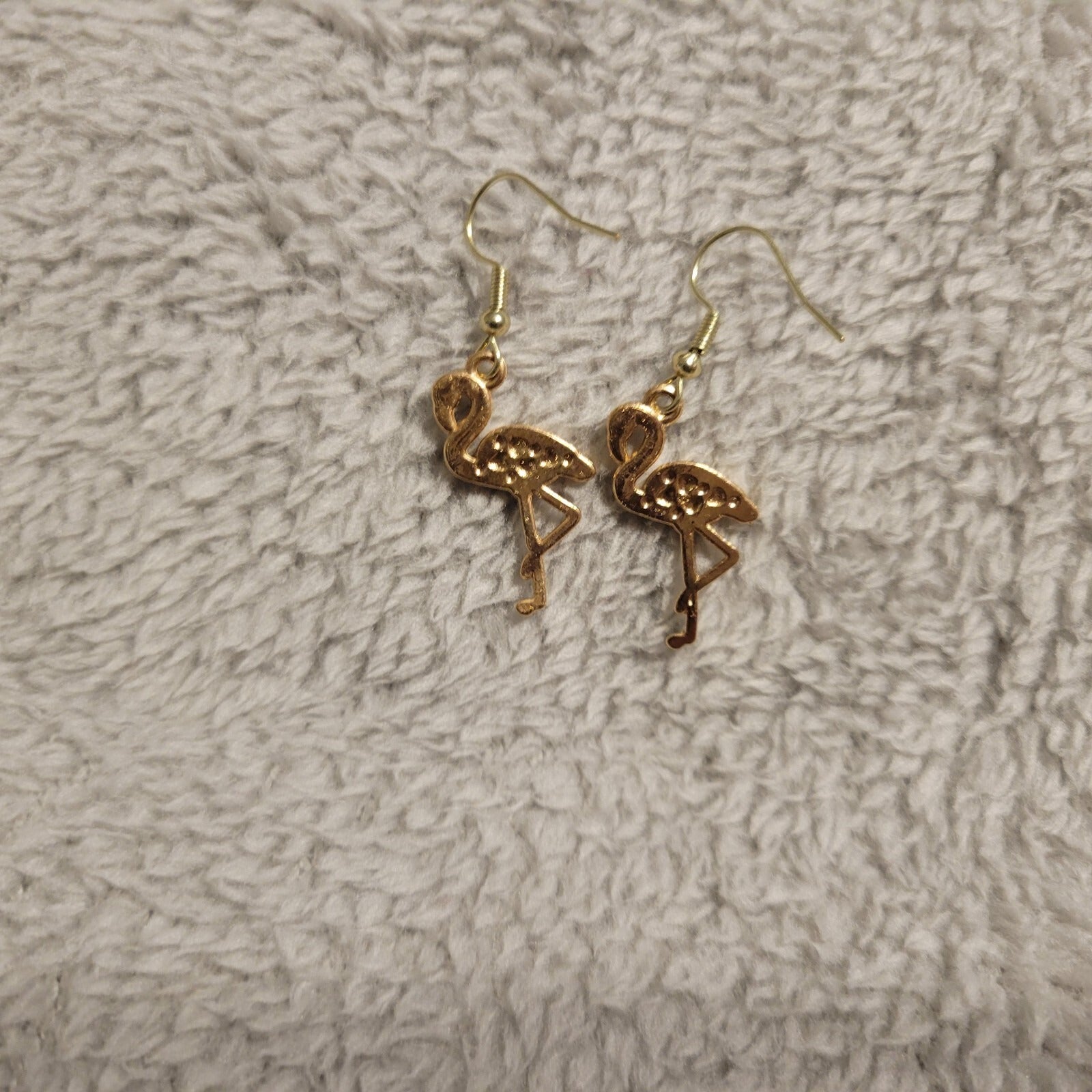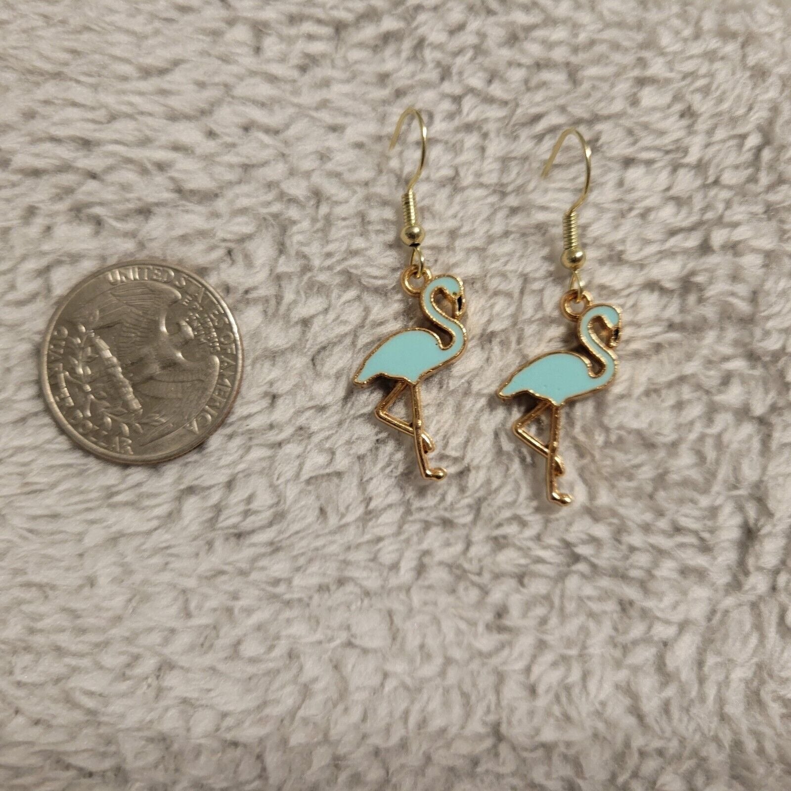 Flamingos Blue Womens Earrings One Pair Gold Tone Hanging Dangle Fish Hook