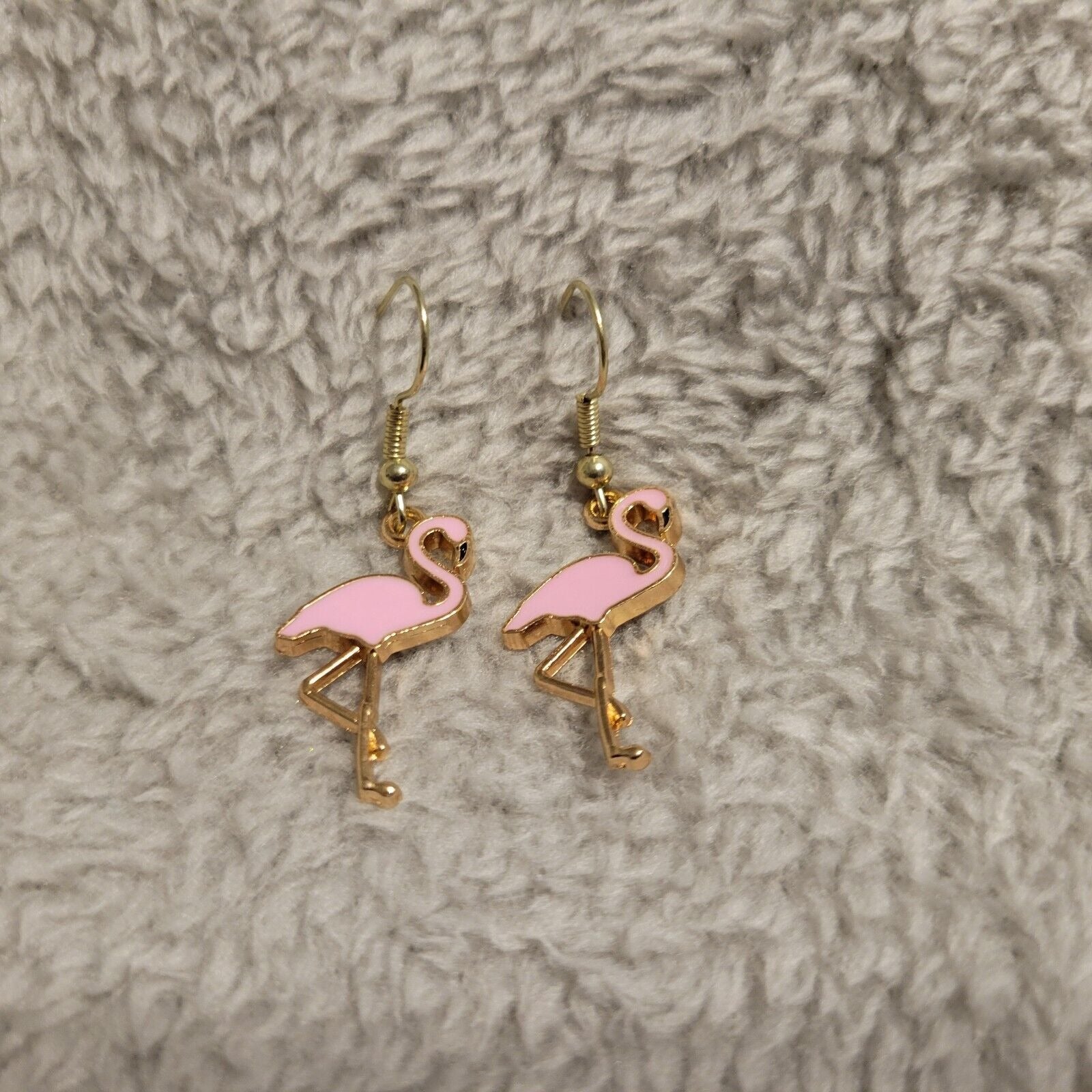Add a touch of whimsy to your wardrobe with these charming Flamingos Pink Women's Earrings. One pair of elegant gold-tone hanging dangle fish hook earrings that are perfect for adding a playful yet sophisticated touch to any outfit. The pink color gives these earrings a fun and feminine flair, making them an ideal accessory for both casual and formal events. Crafted with a keen eye for detail, these earrings boast a delightful dangle/drop style that catches the light and draws the eye. They are versatile enough to complement a variety of styles, from bohemian to classic. Make a statement without saying a word with these enchanting earrings that promise to be a delightful addition to your jewelry collection.