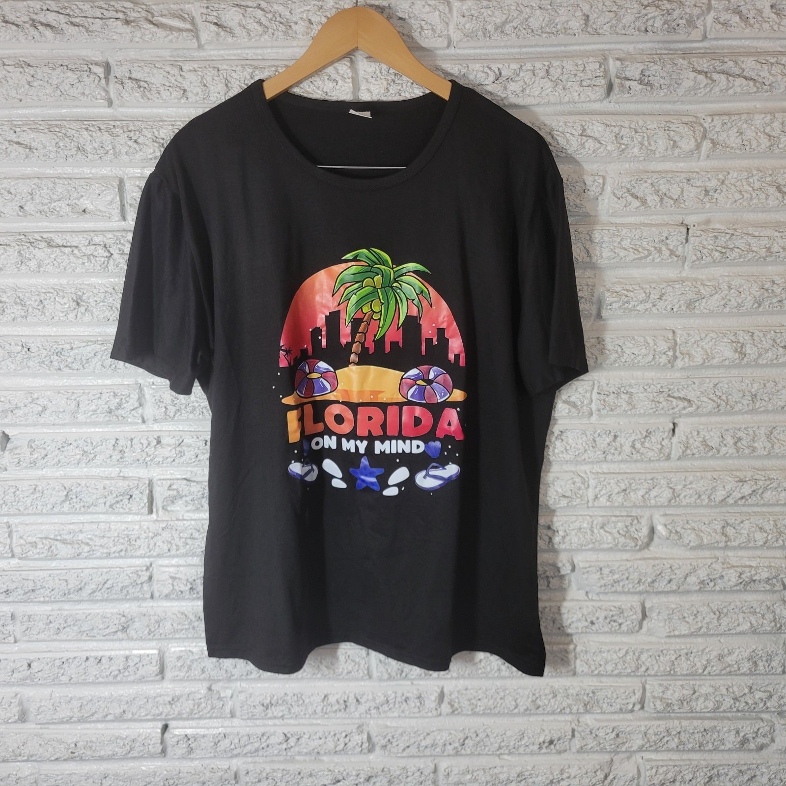Florida On My Mind Womens Top 2XL Plus Tee Short Sleeve Black Polyester Souvenir