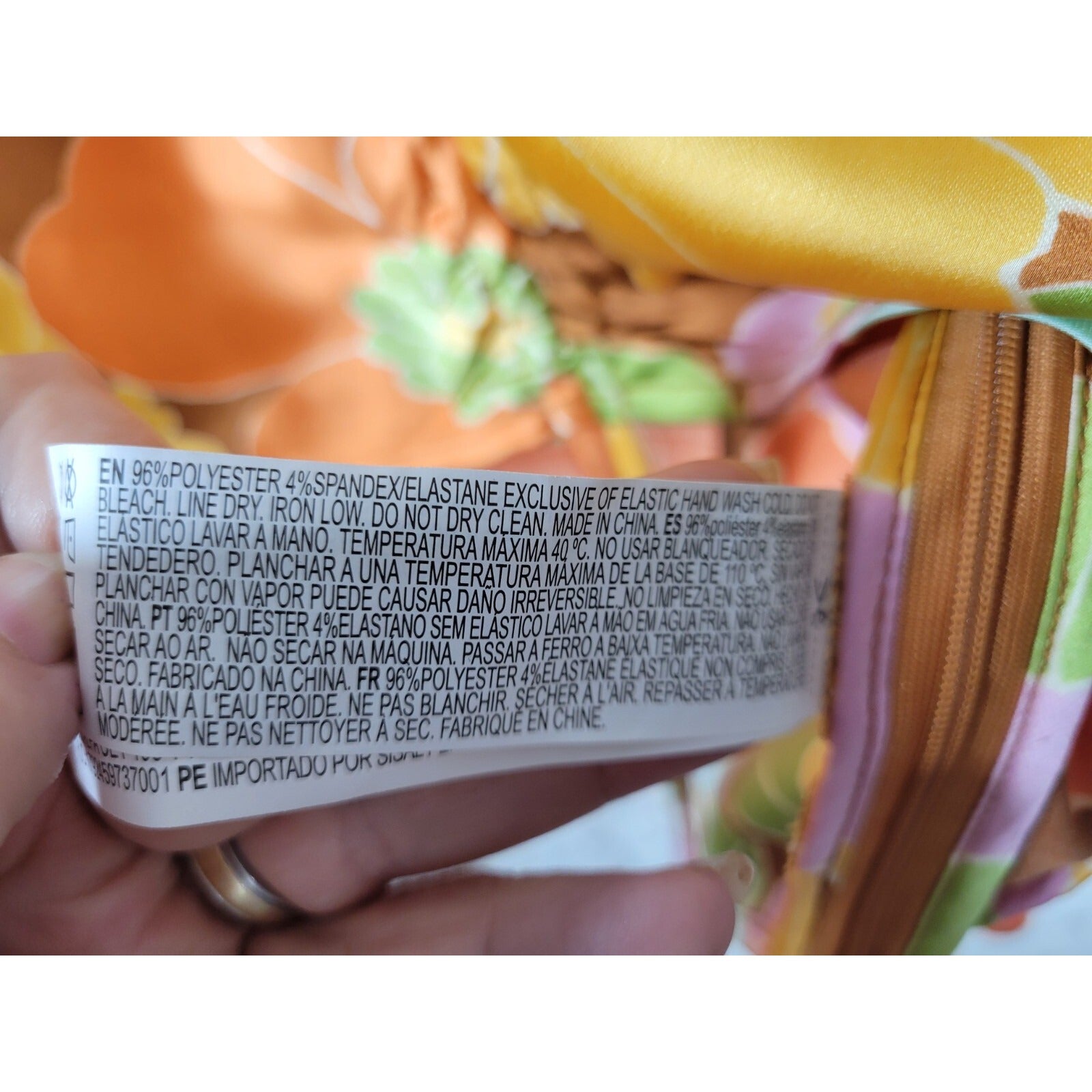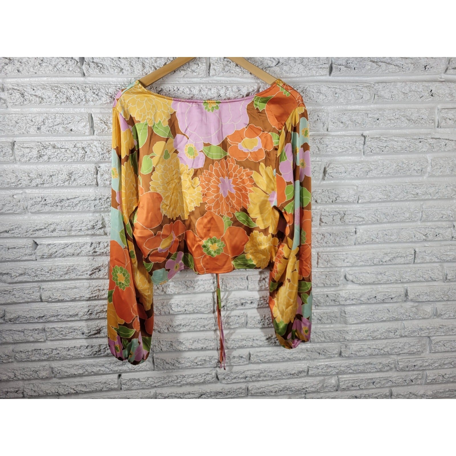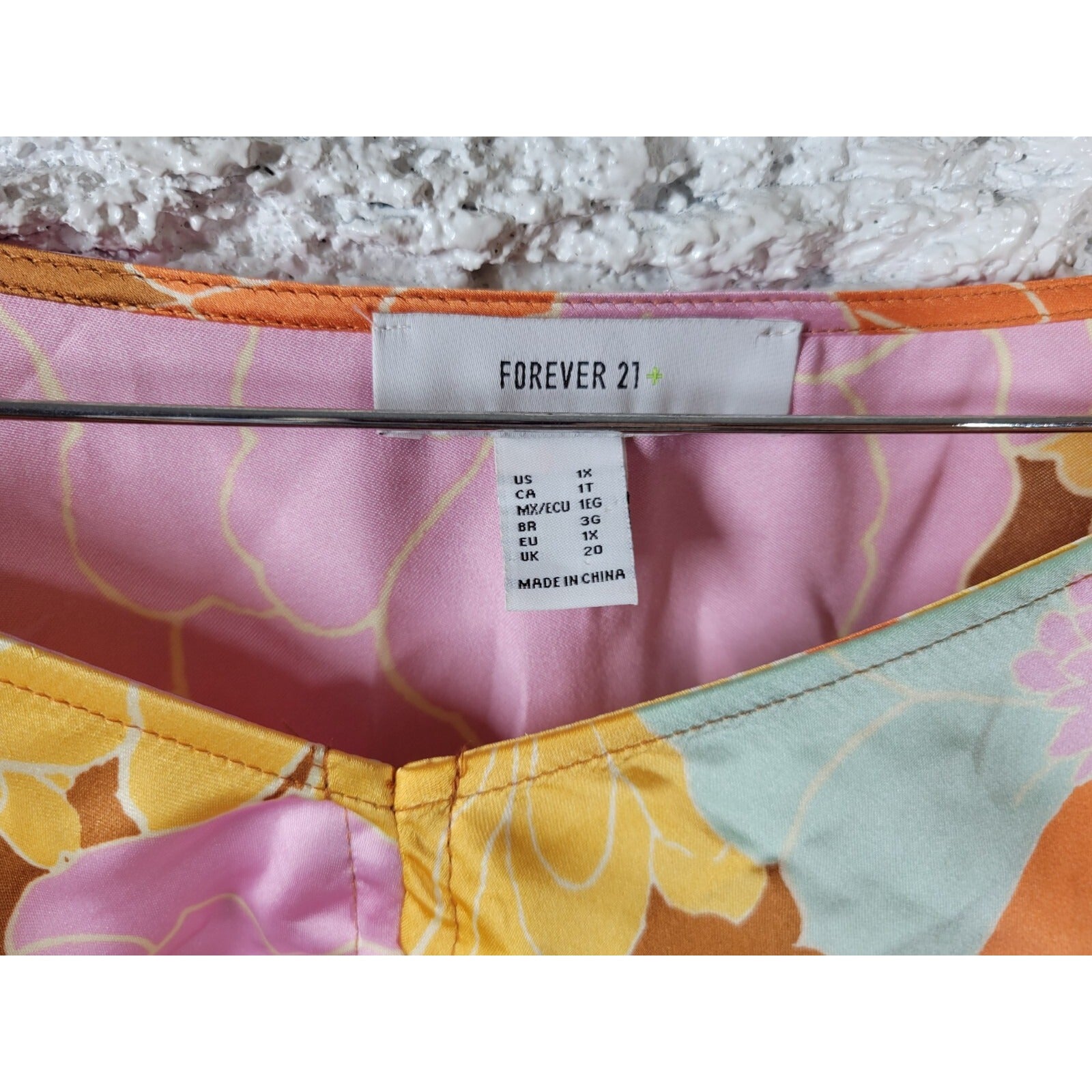 Forever 21 Women Top 1X Plus Crop Boho Festival Orange Floral Tie Front Side Zip