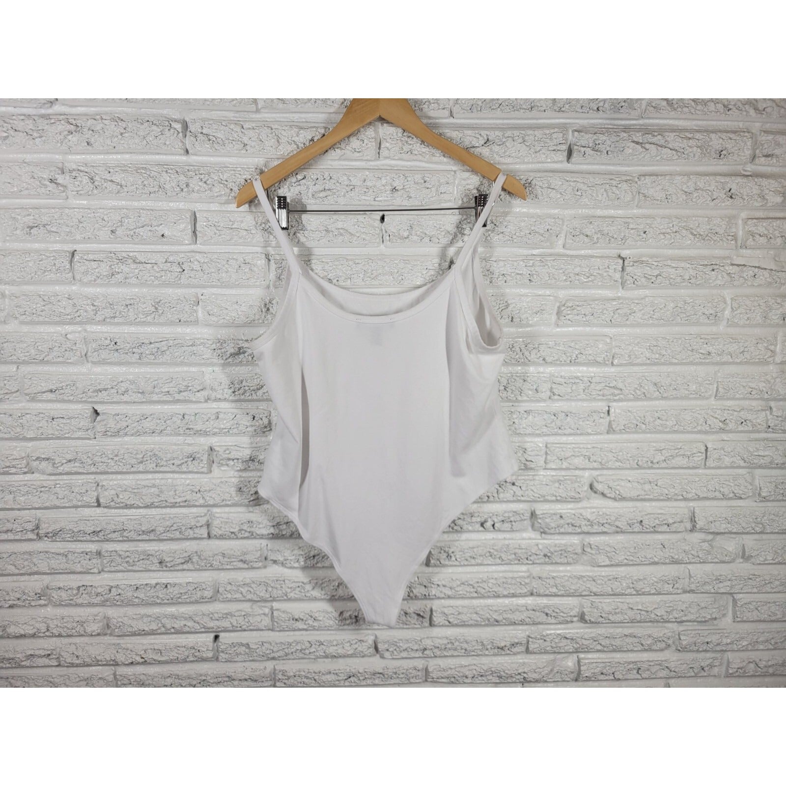 Forever 21 Womens Bodysuit 2X Plus Spaghetti Strap White Snap Cotton Blend