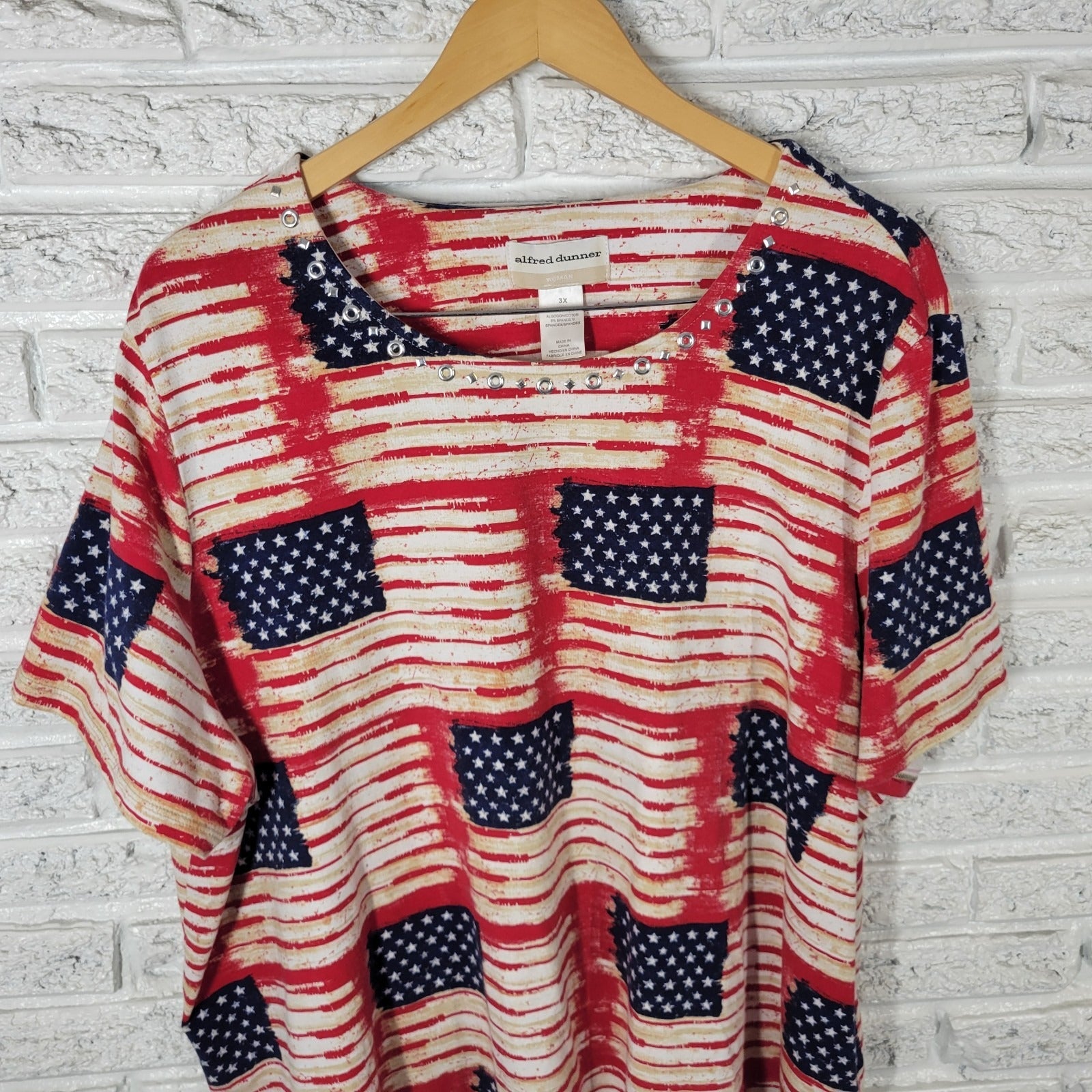 Fourth of July Alfred Dunner Womens Top 3X Plus Tee Short Sleeve Flag Patriotic