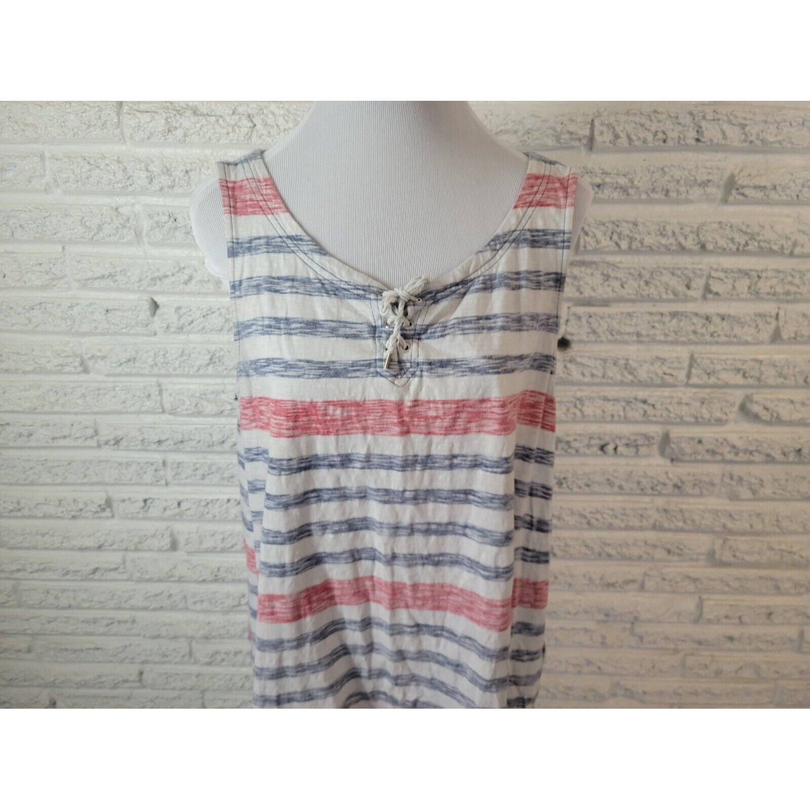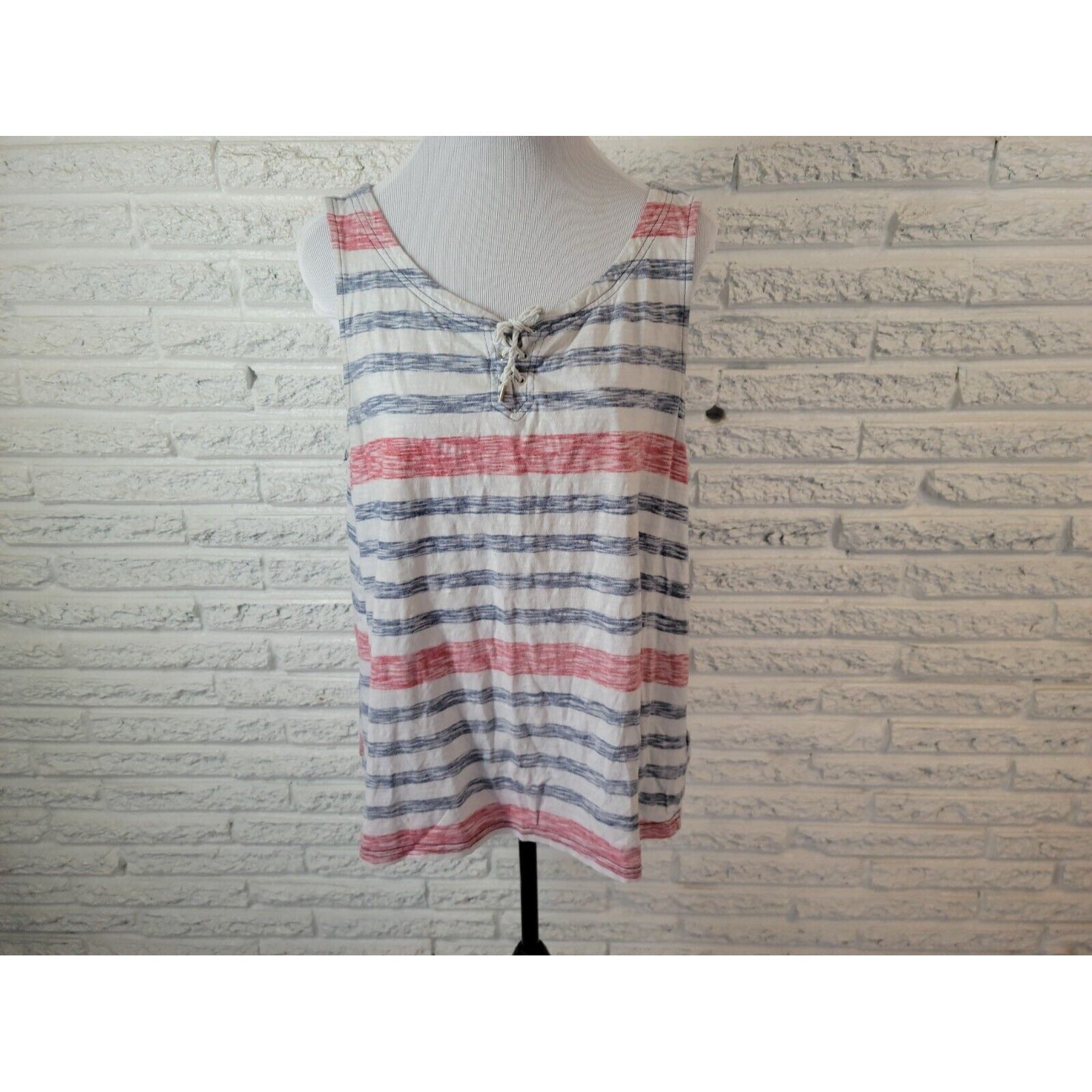Fourth of July Chaps Womens Top XXL Tank Patriotic Red Blue Stripe Muted Lace Up