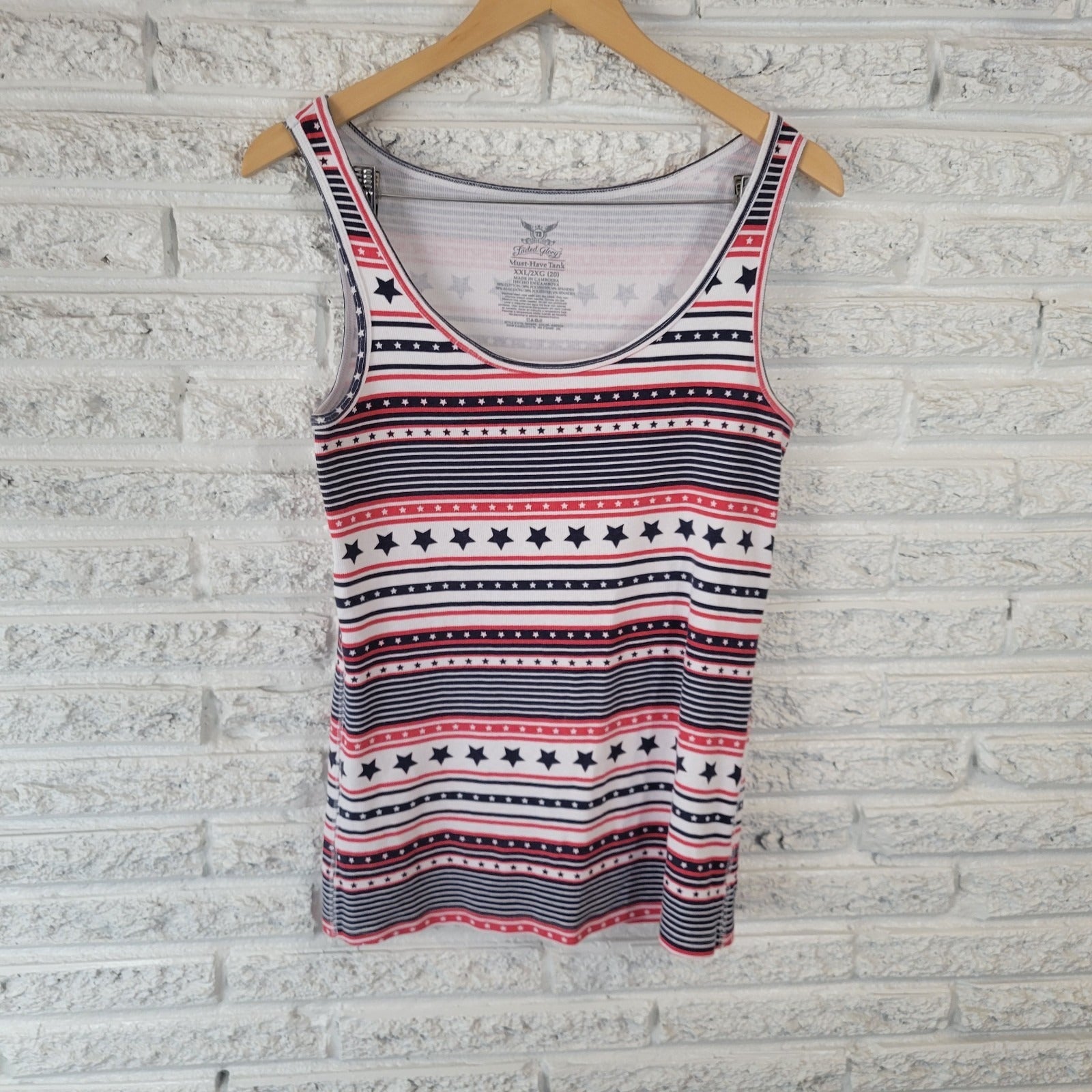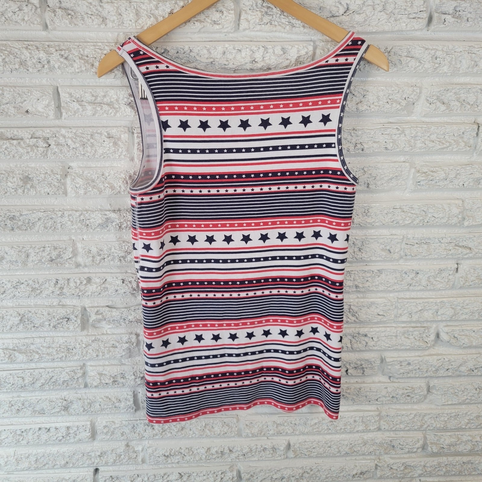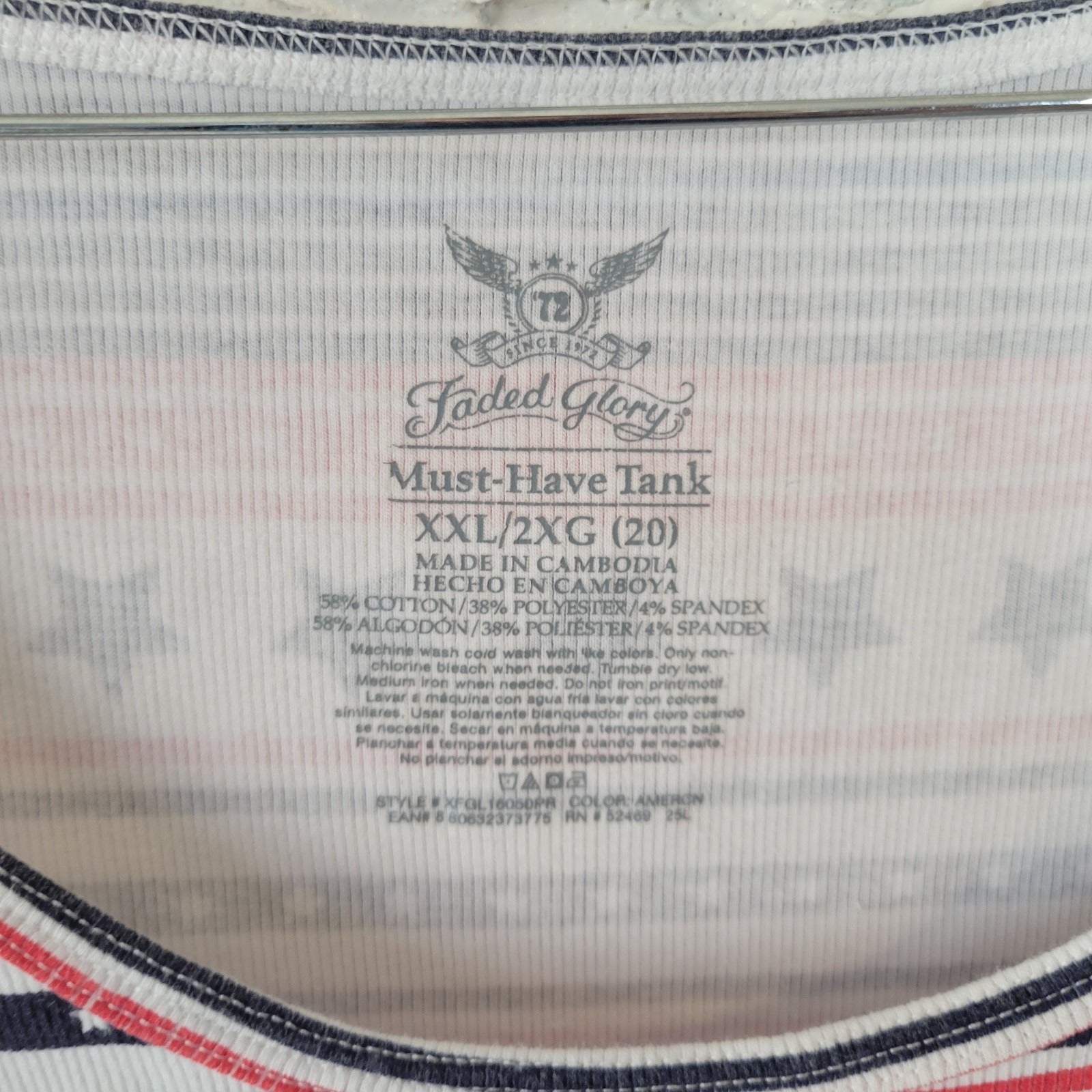 Fourth of July Faded Glory Womens Top XXL Plus Tank Knit Stars Stripes Blue Red
