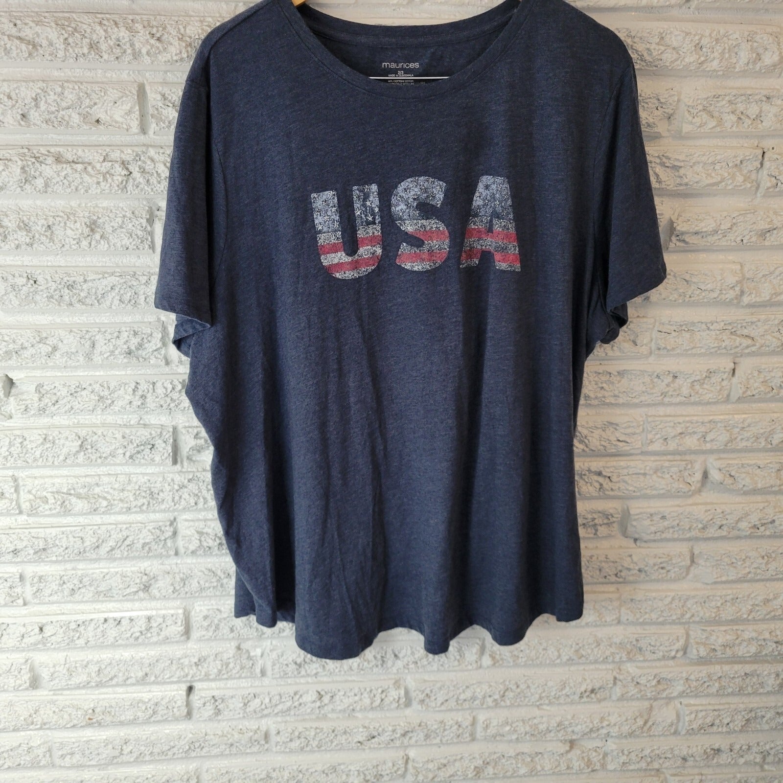 Fourth of July Maurices Womens Top 2X 3X Plus Tee Patriotic USA Gray Poly Blend