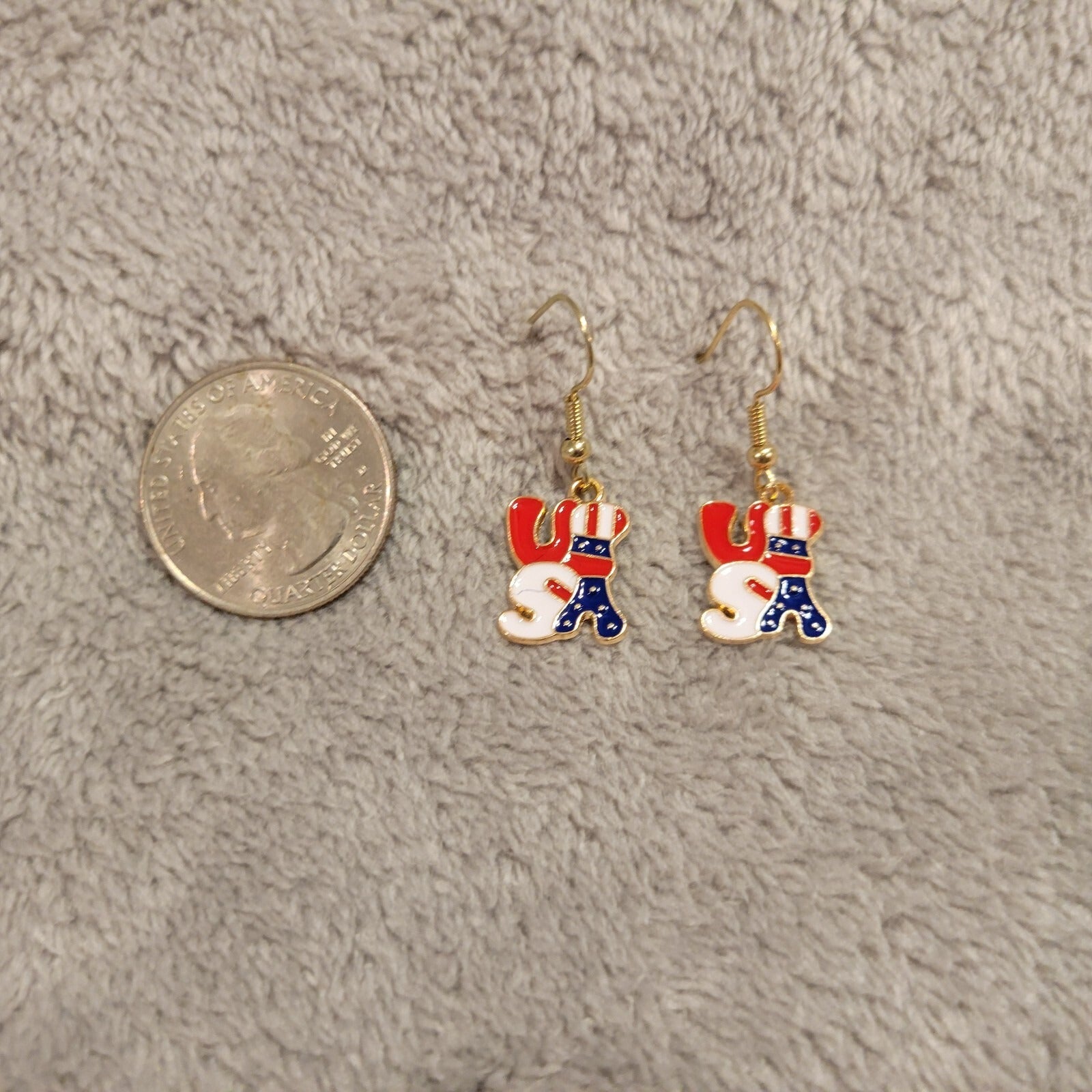 These Fourth of July patriotic women's earrings are a fun and stylish accessory to show off your American pride. The USA hanging dangle design features a multicolor flag pattern, perfect for celebrating the Fourth of July in style. The dangle/drop style adds a touch of movement and flair to any outfit, making them a great addition to your jewelry collection for the holiday season.