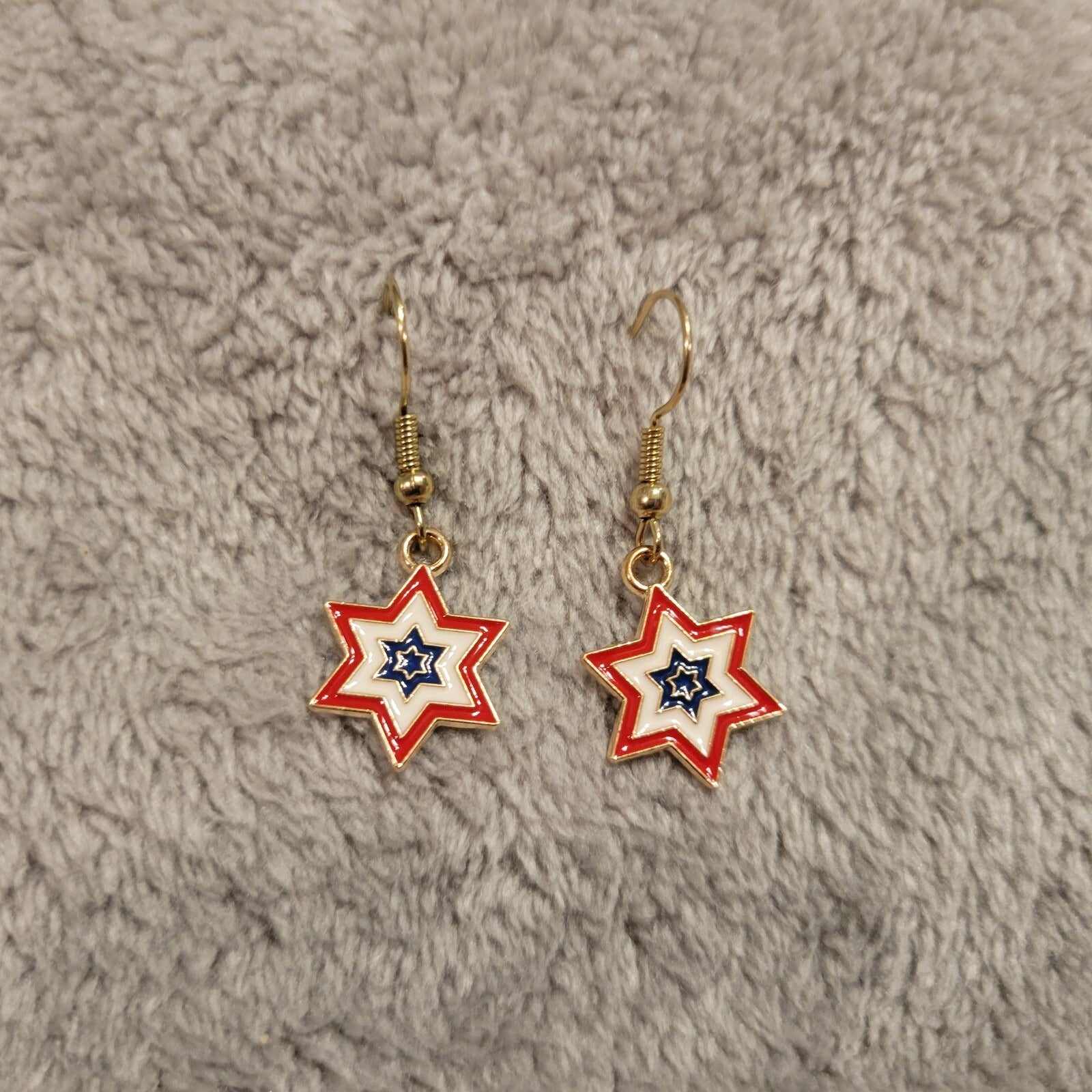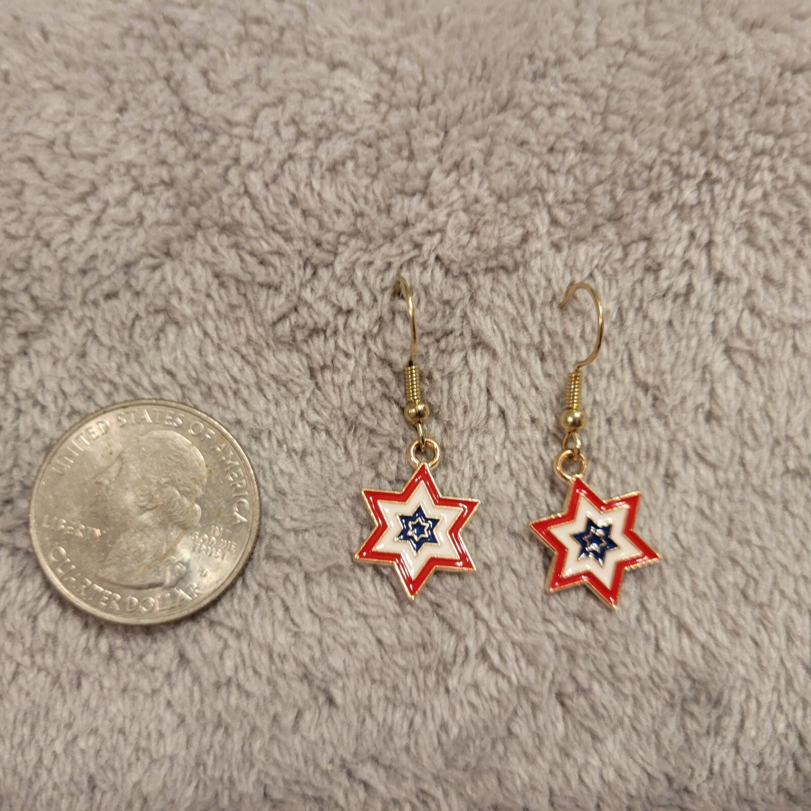 Fourth of July Patriotic Womens Earrings One Pair 6 Point Star Flag USA Hanging