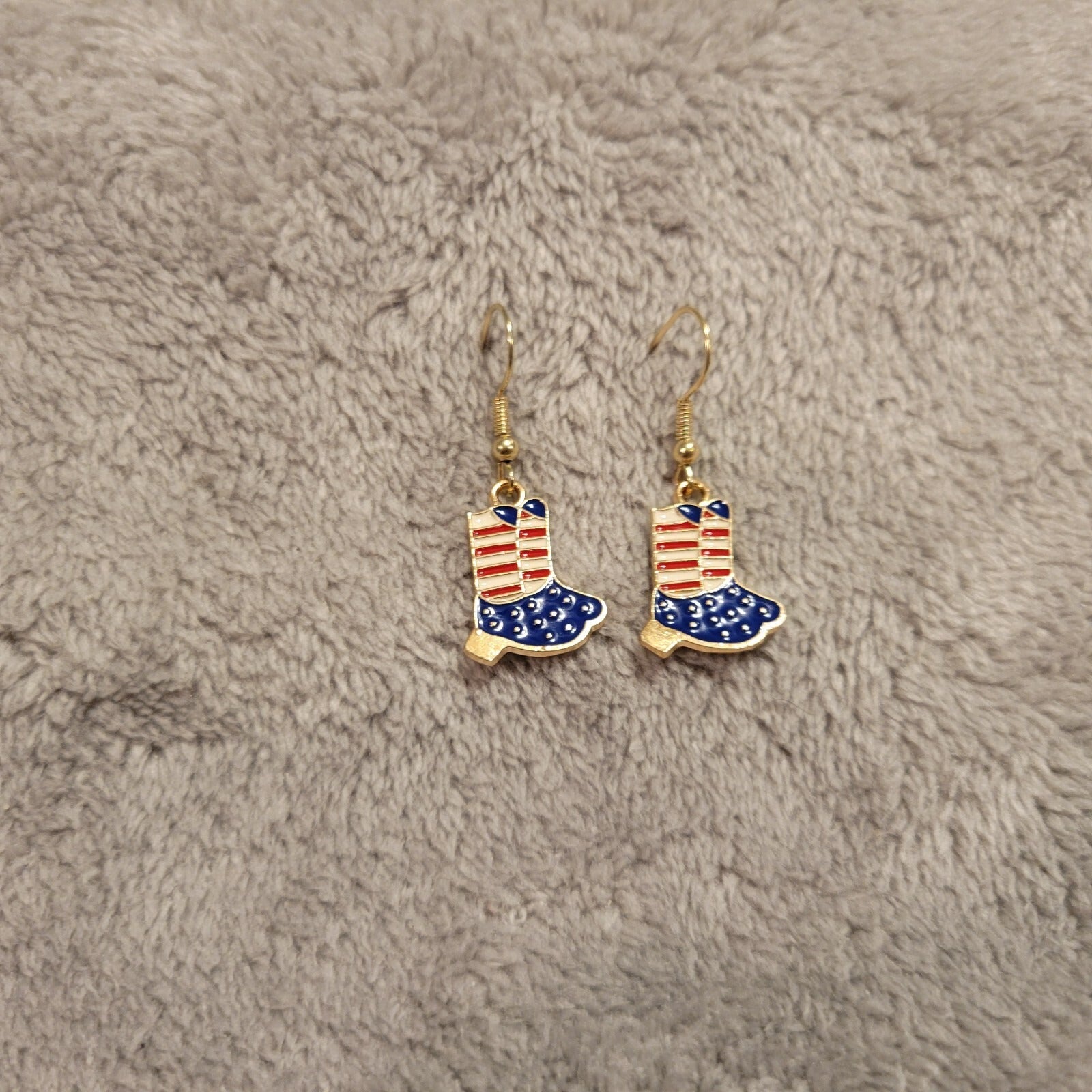 Fourth of July Patriotic Womens Earrings One Pair Cowgirl Boots Flag USA Hanging