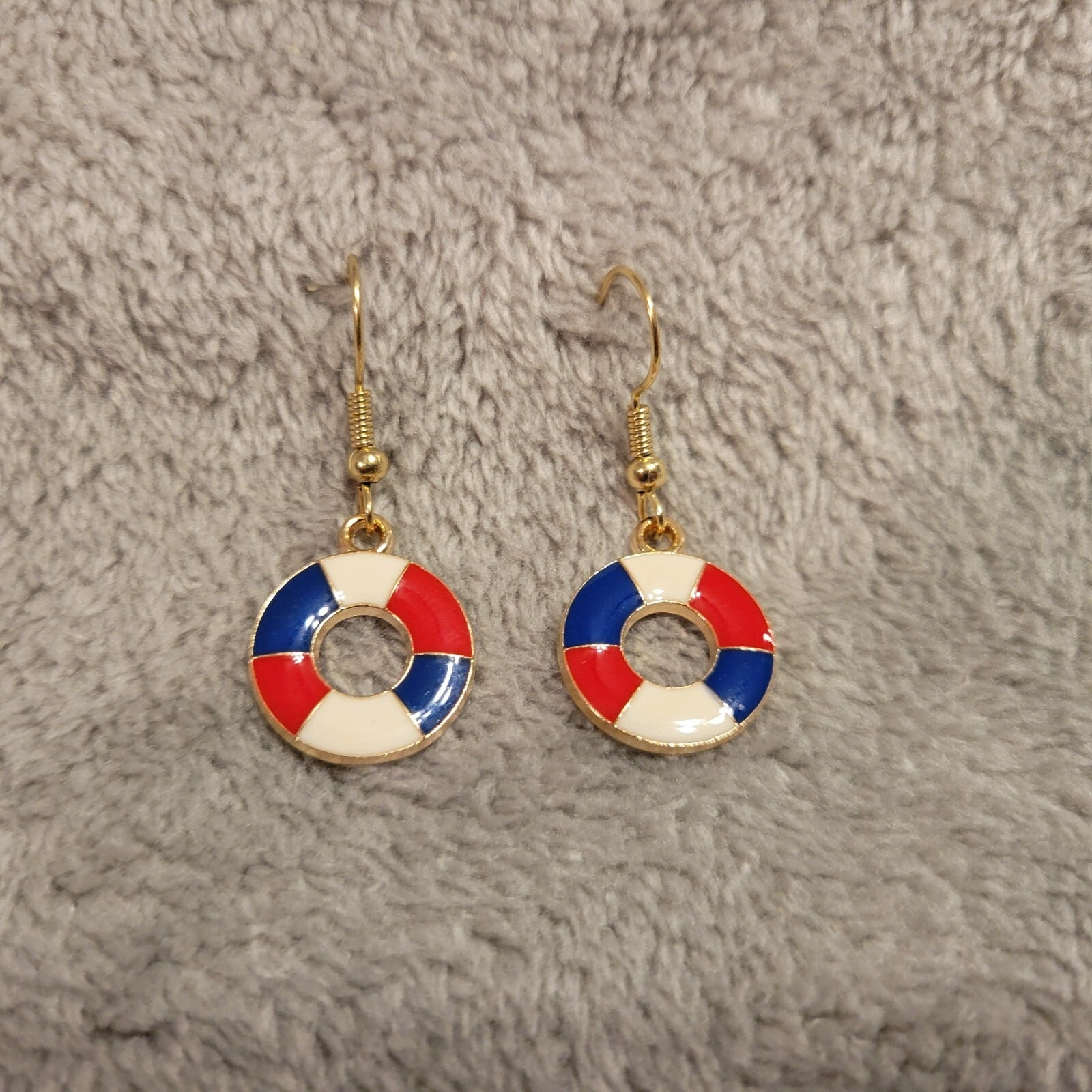 Fourth of July Patriotic Womens Earrings One Pair Life Preserver USA Hanging