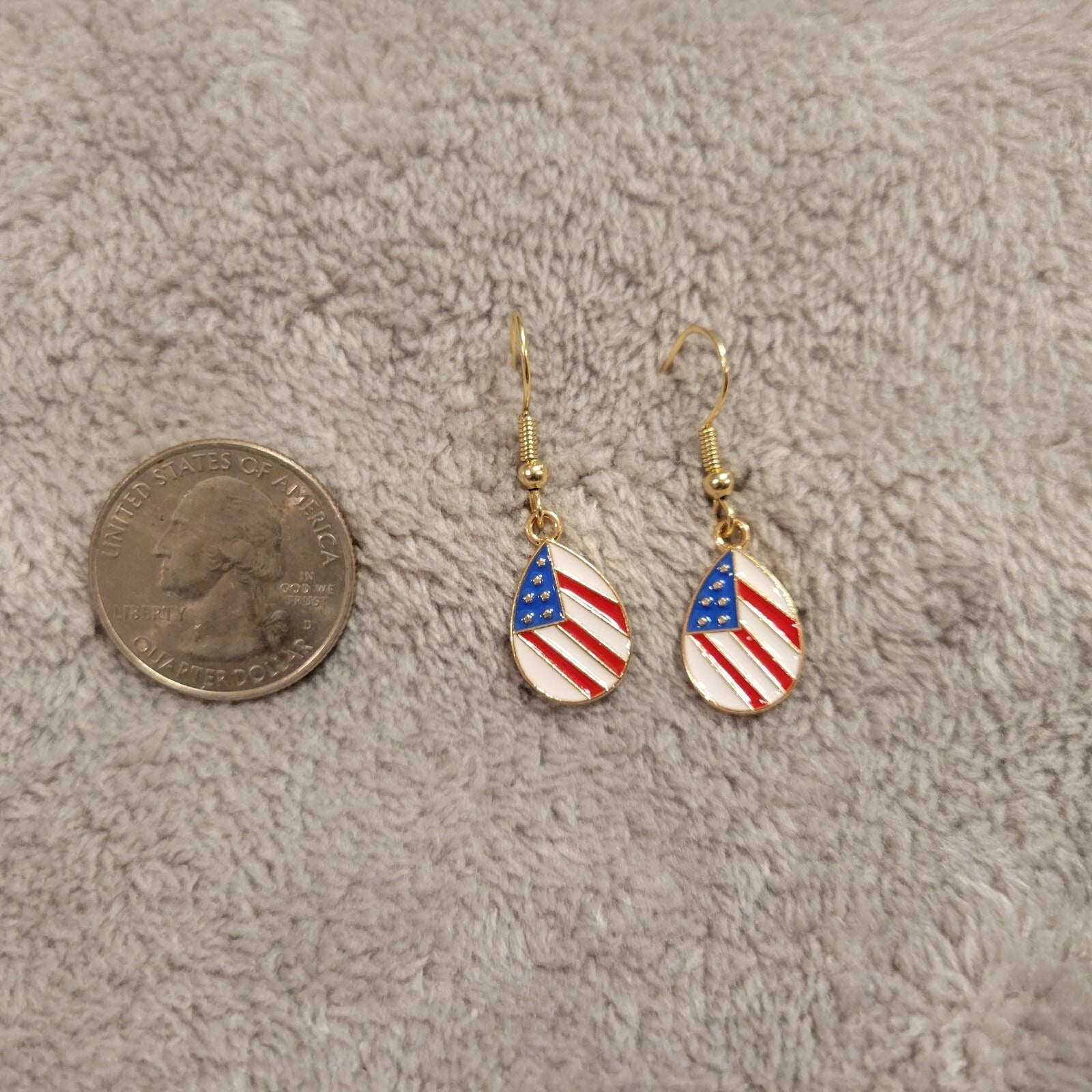 Fourth of July Patriotic Womens Earrings One Pair Teardrop Flag Hanging Dangle
