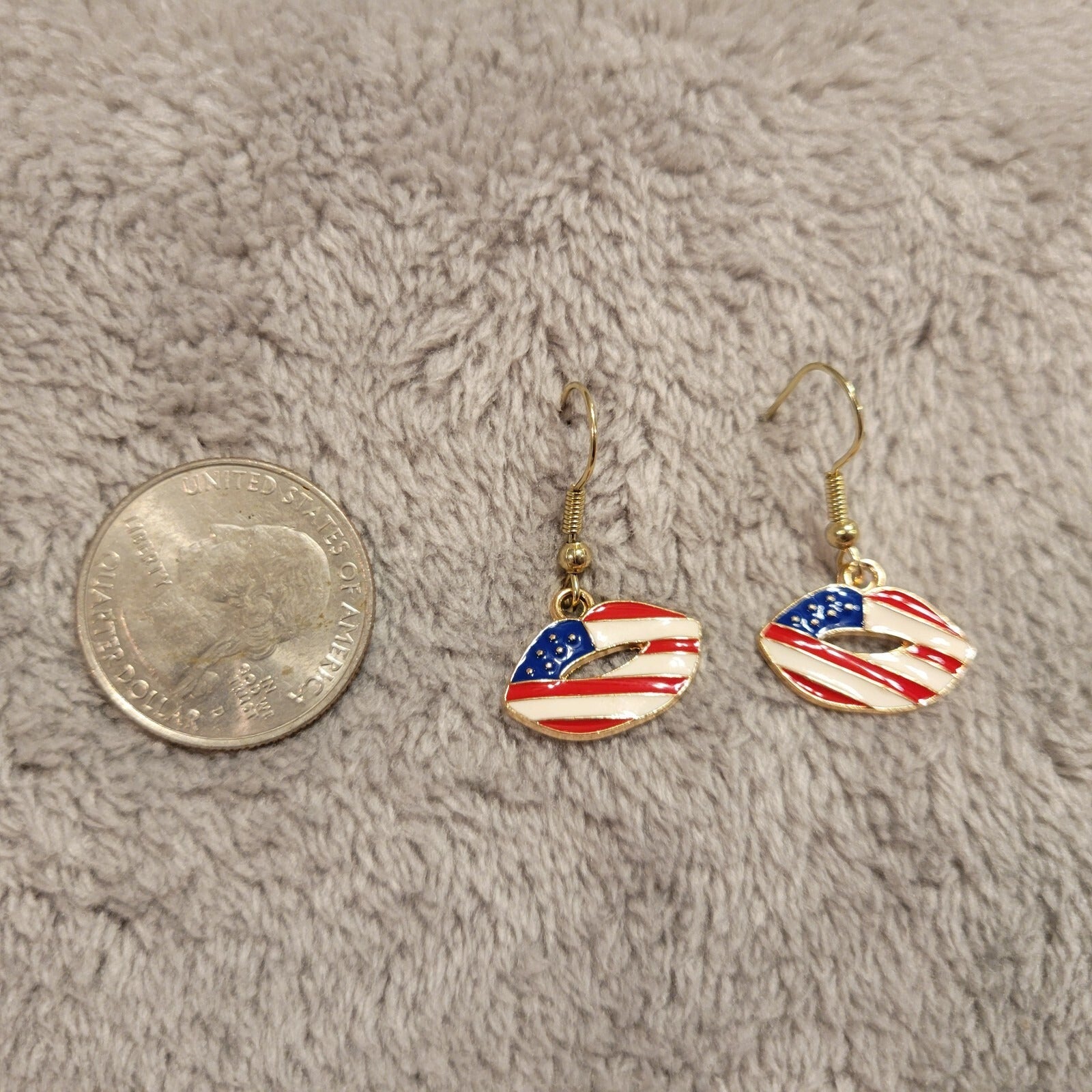 Fourth of July Patriotic Womens Earrings One Pair USA Flag Kiss Lips Hanging