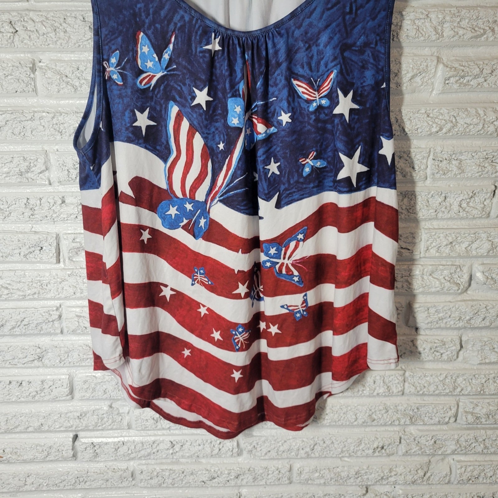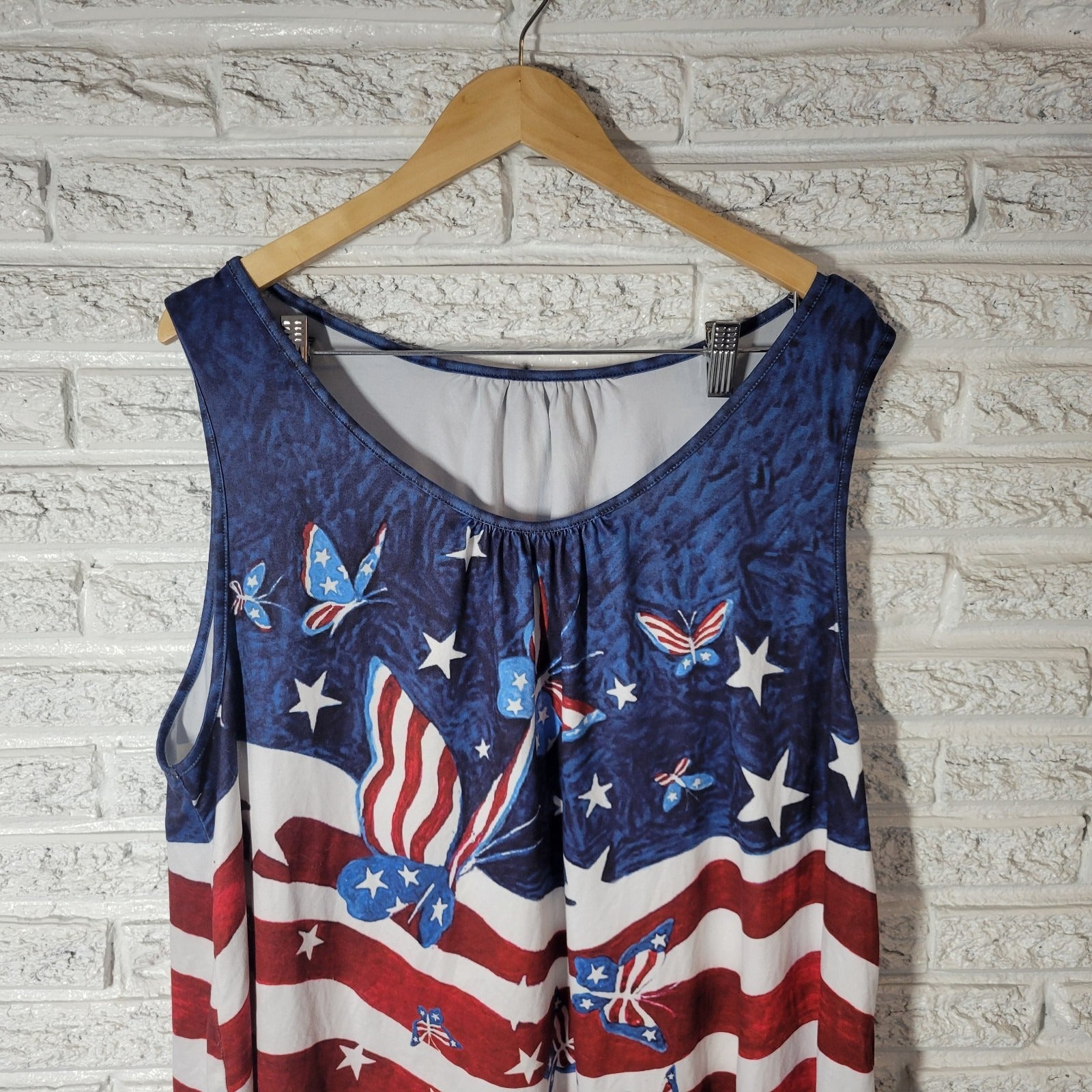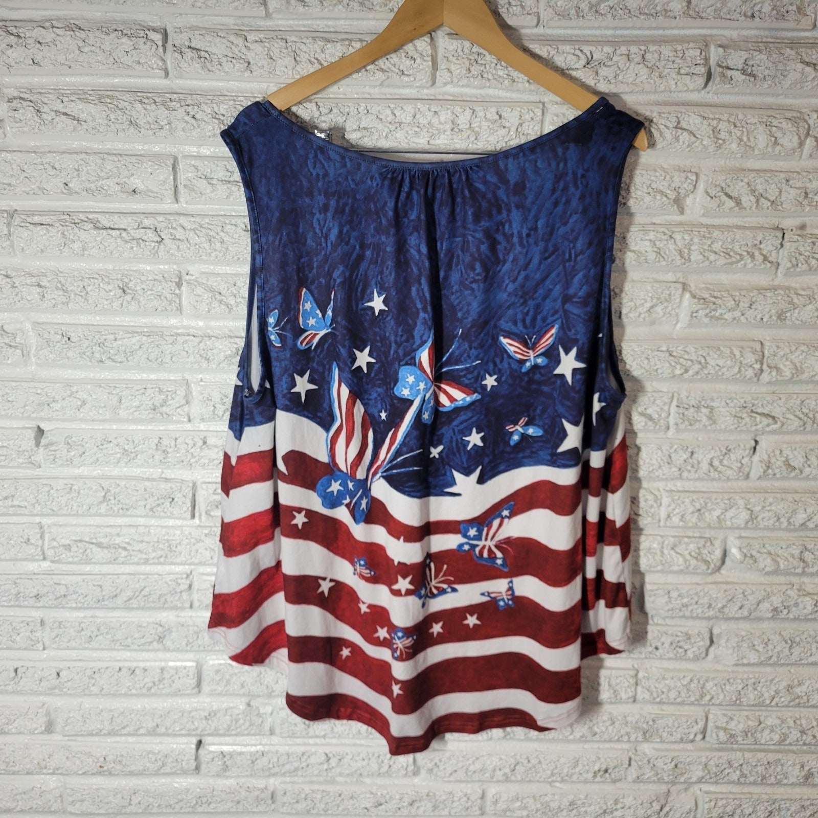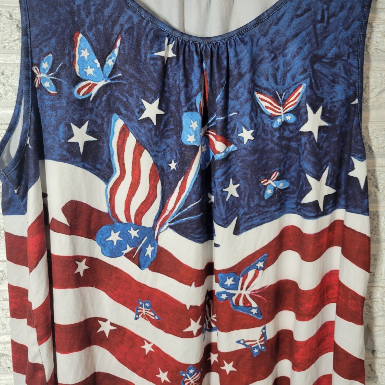 Fourth of July Women Top 4XL Plus Tank Patriotic Butterflies Red Blue Poly Blend