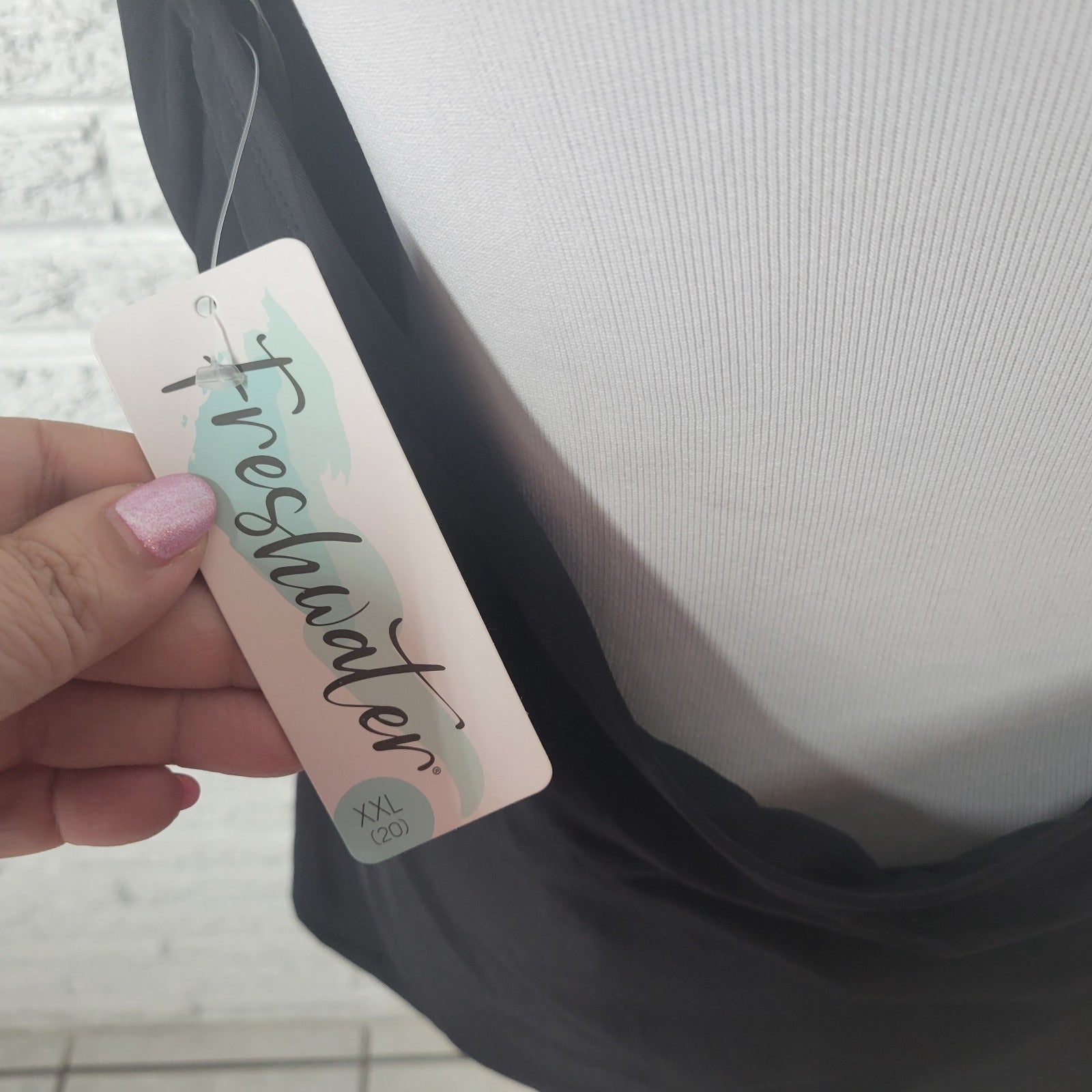 This Freshwater Women's Swim Top in XXL 20 Plus size is a stylish and comfortable choice for any water activity. The black halter top features a solid pattern, lined interior, built-in bra for support, and stretchy nylon and spandex material for a flattering fit. Hand wash only to maintain the quality of this swim top from the brand FRESHWATER. This top is designed specifically for plus-size women, offering both style and functionality in one sleek design.