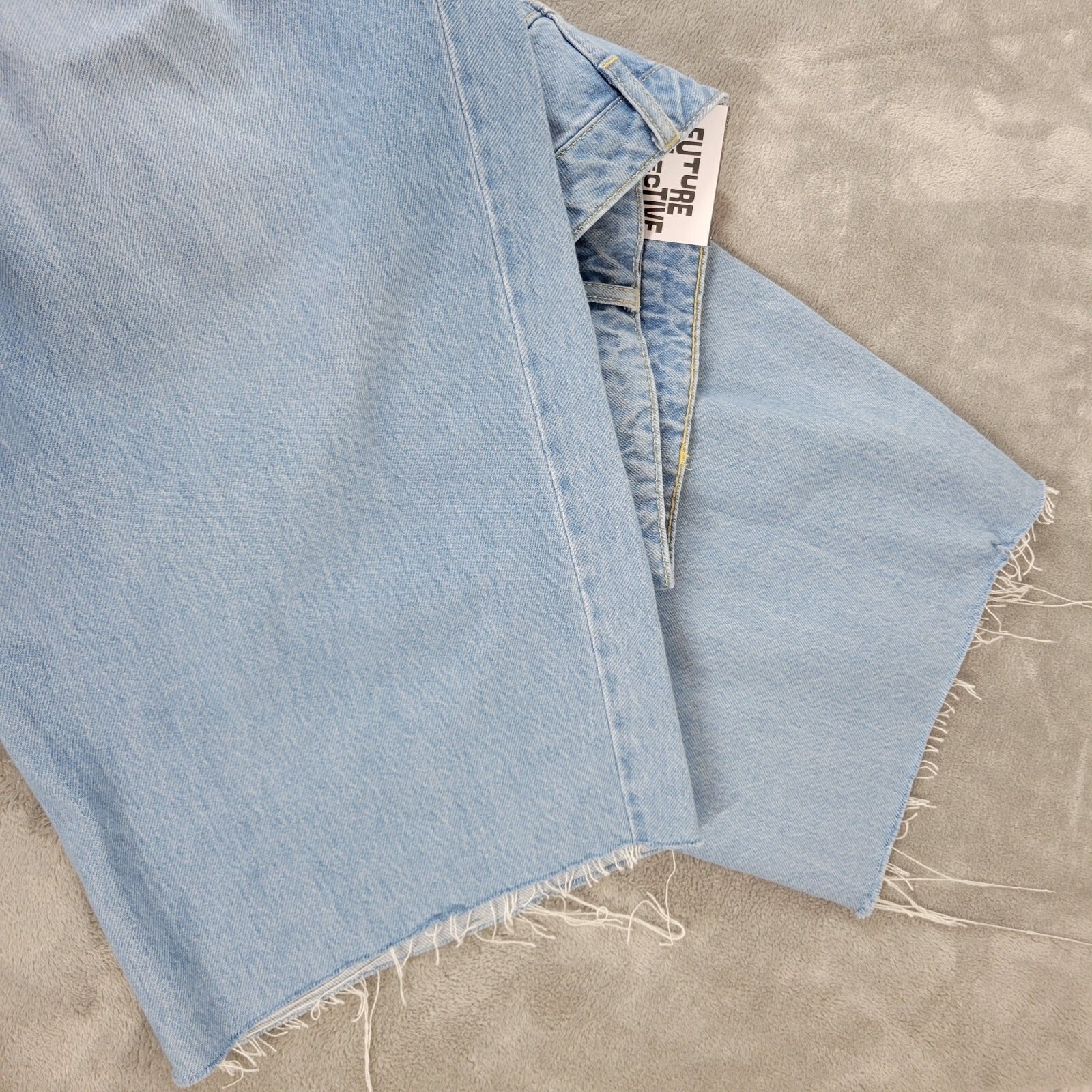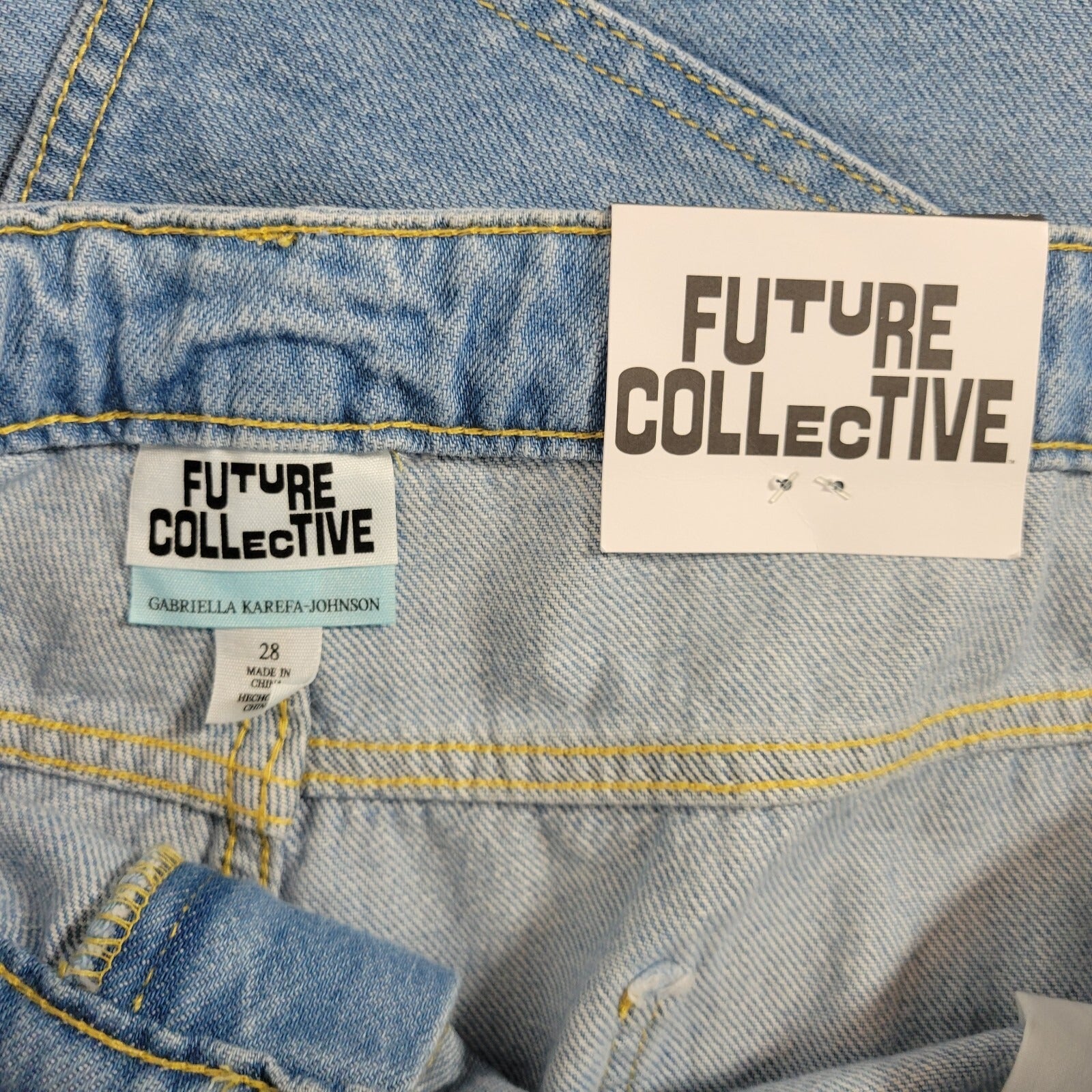 Future Collective Womens Jeans 28 Crop Straight Leg Mid Rise Blue Denim Raw Hem