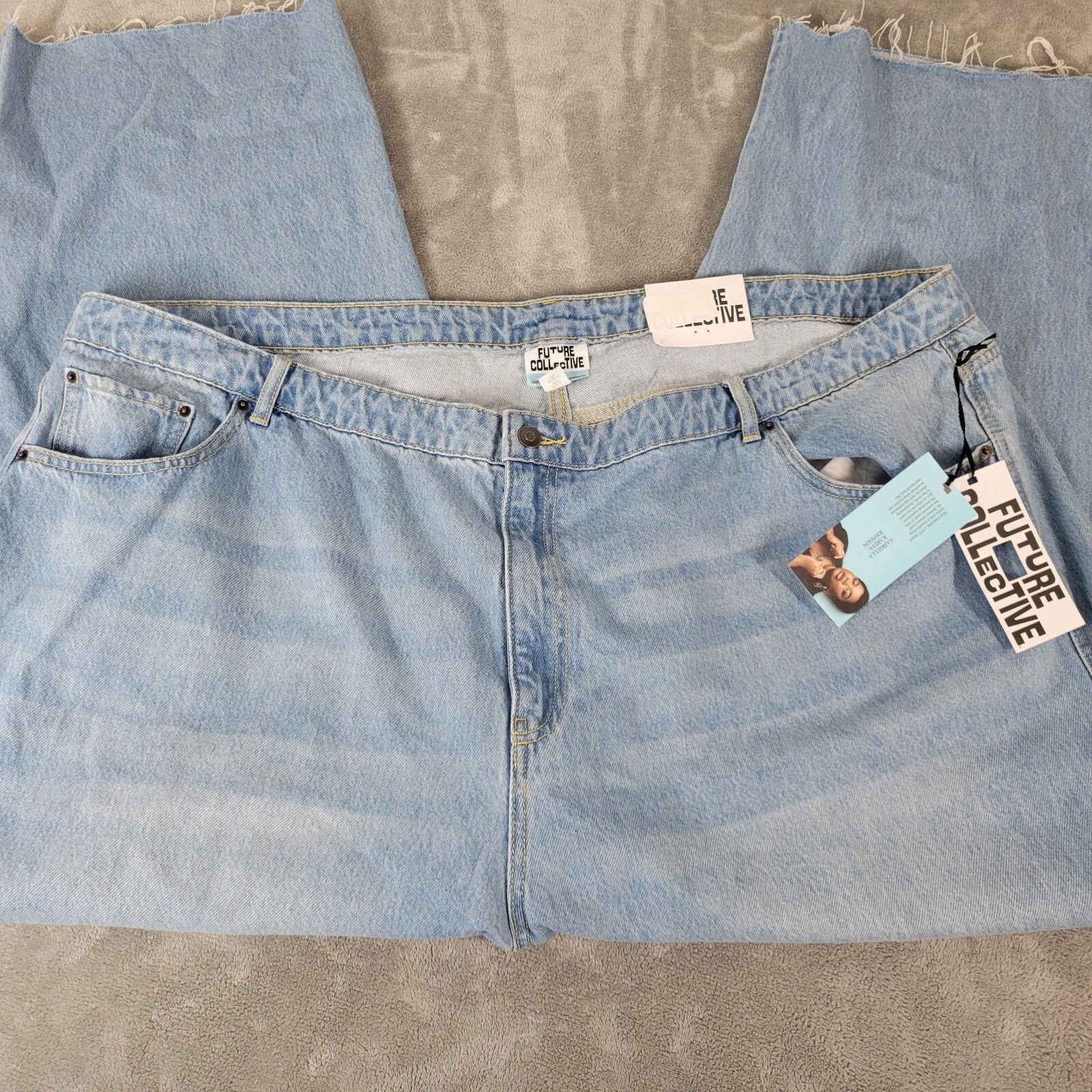 Crafted for both comfort and style, these FUTURE COLLECTIVE women's jeans come in a versatile light blue shade that pairs effortlessly with your favorite tops and shoes. The size 28 jeans fit a plus-size waist of up to 50 inches, ensuring a relaxed fit for a range of body types. Made from 100% cotton denim, these straight-leg jeans are designed to maintain their shape and color through regular wear and machine washing. Details include a classic zip fly closure and a raw hem for a touch of modern edge, while the five-pocket design provides practicality without compromising on style. Whether dressing up for a casual outing or putting together a laid-back ensemble for a cozy night in, these jeans are an ideal foundation for countless looks across all seasons.