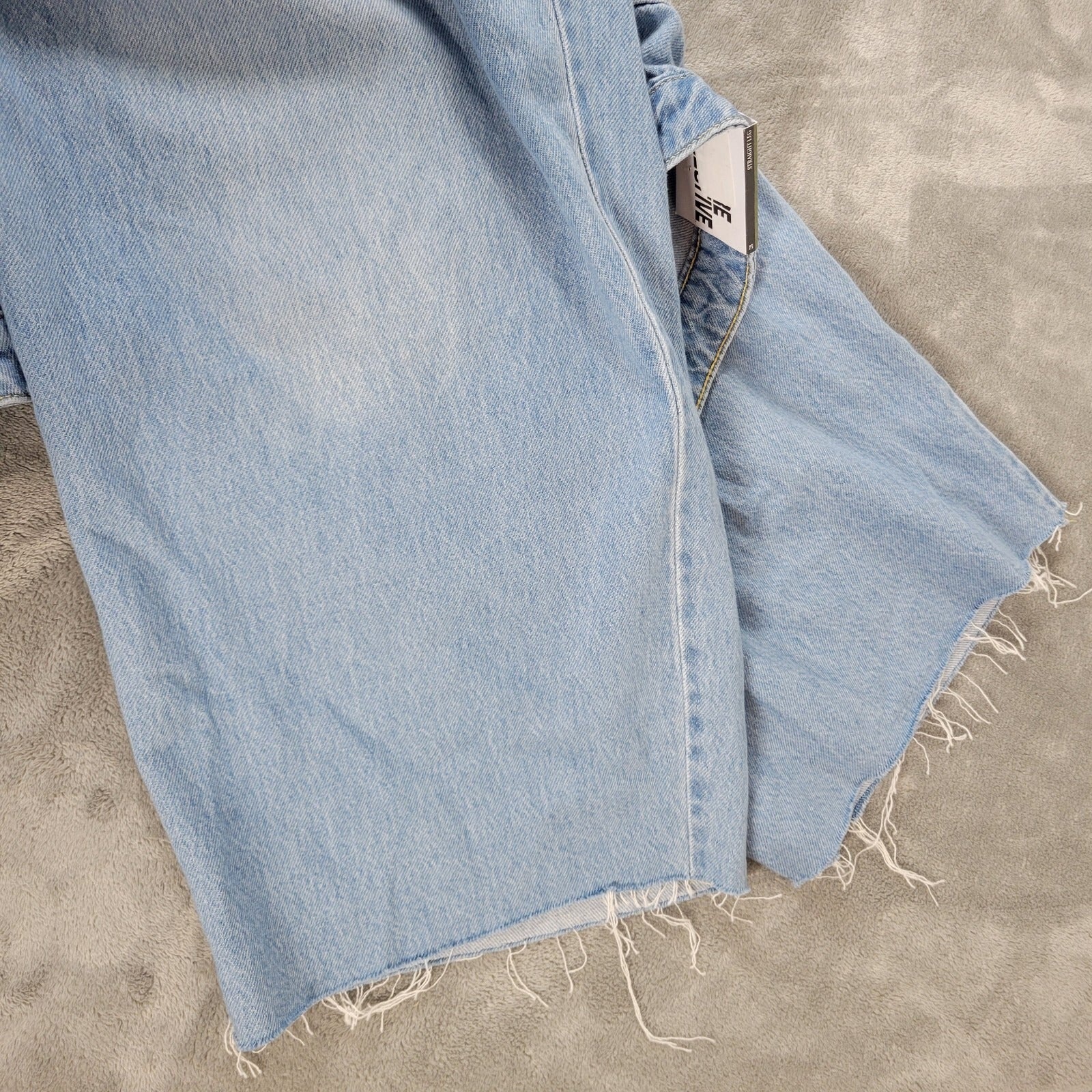 Future Collective Womens Jeans 28 Straight Leg Light Blue Denim Zip Fly Raw Hem