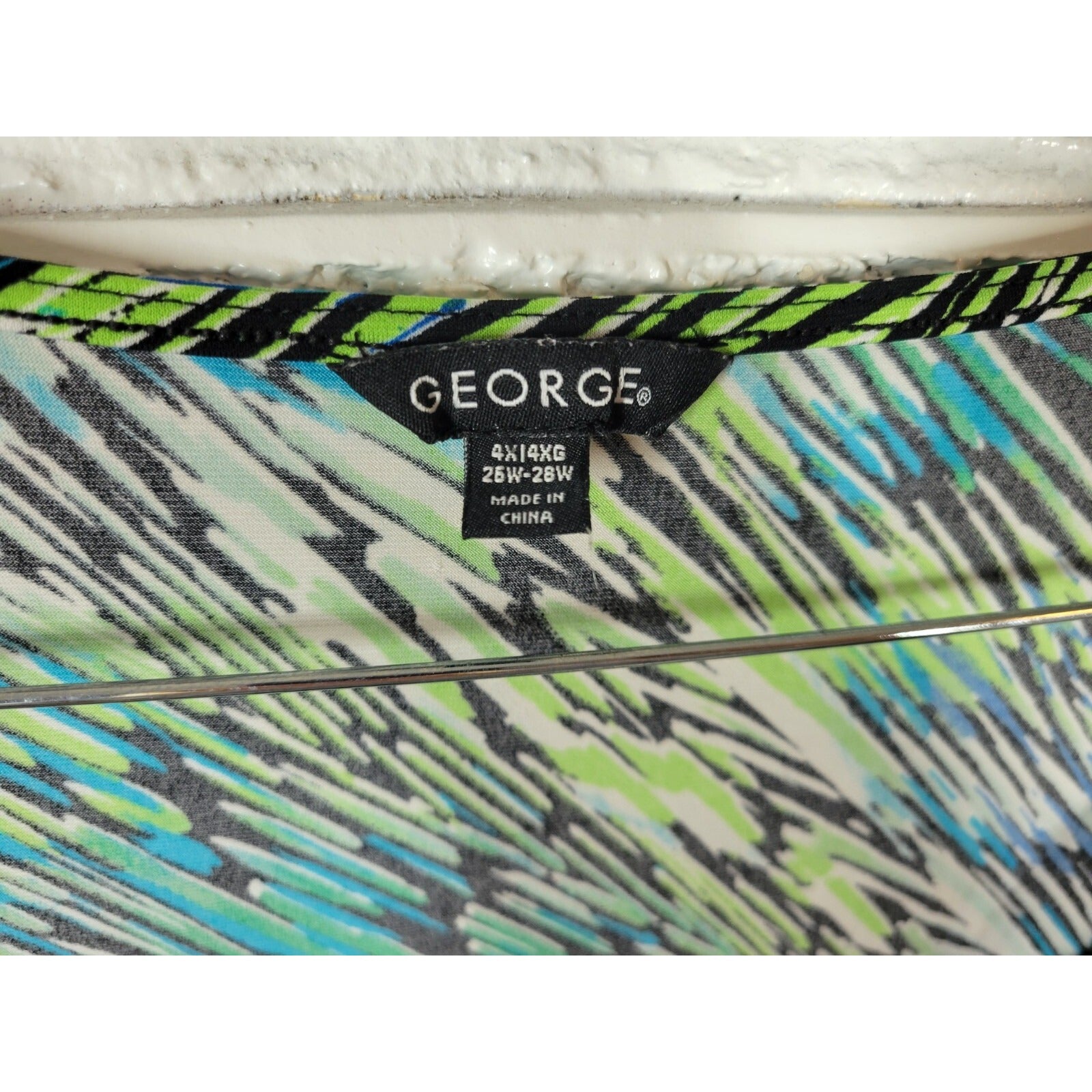 George Women Top 4X 26W 28W Plus Tank Blue Watercolor Draped Poly Blend Career