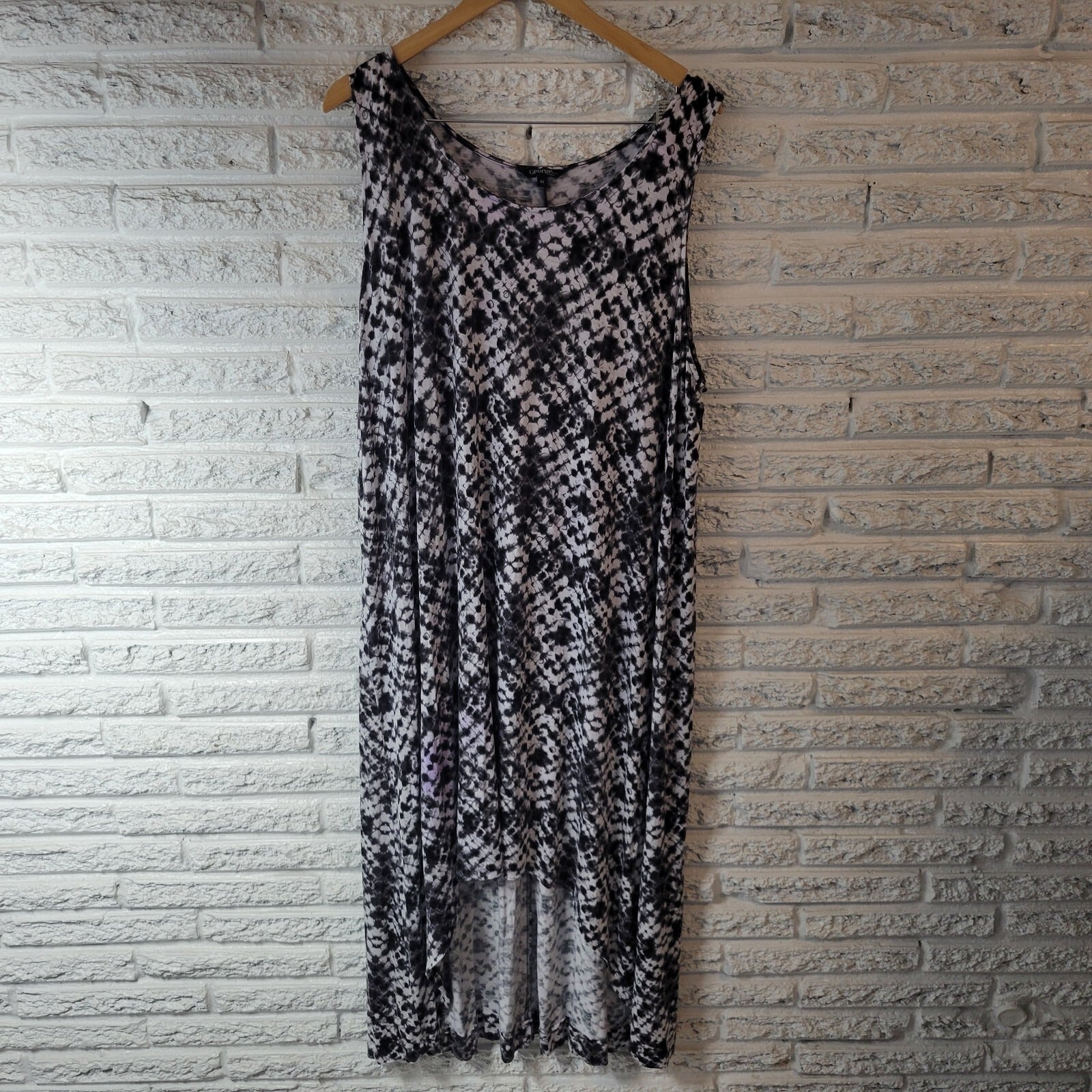 George Womens Dress 4X Plus Tank Black White Tie Die Asymmetric High Low Casual