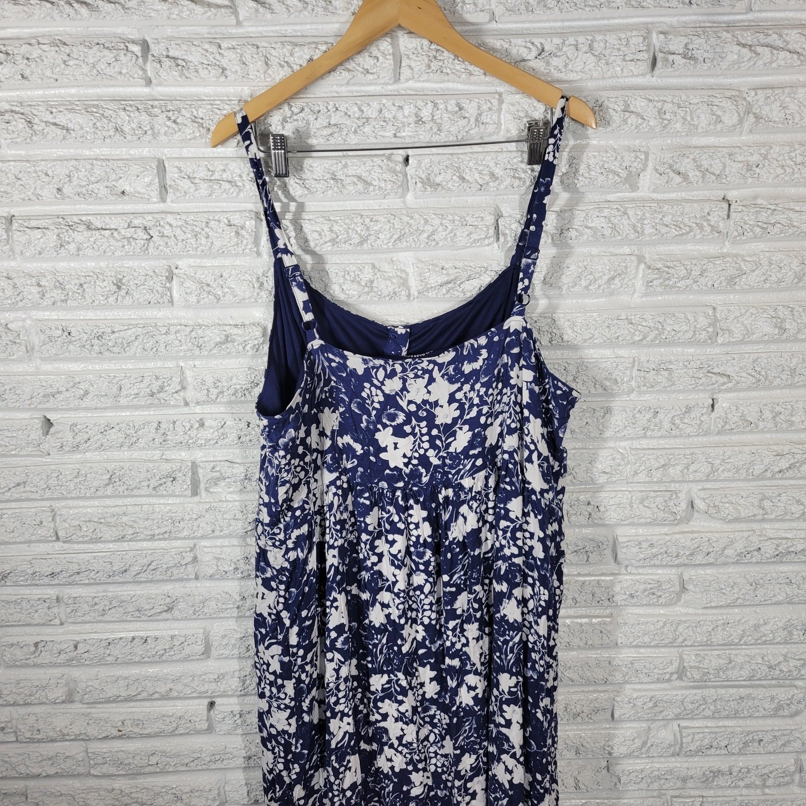 GH Bass Co Women Dress XXL Plus Slip Midi Blue Floral Lined Adjustable Spaghetti
