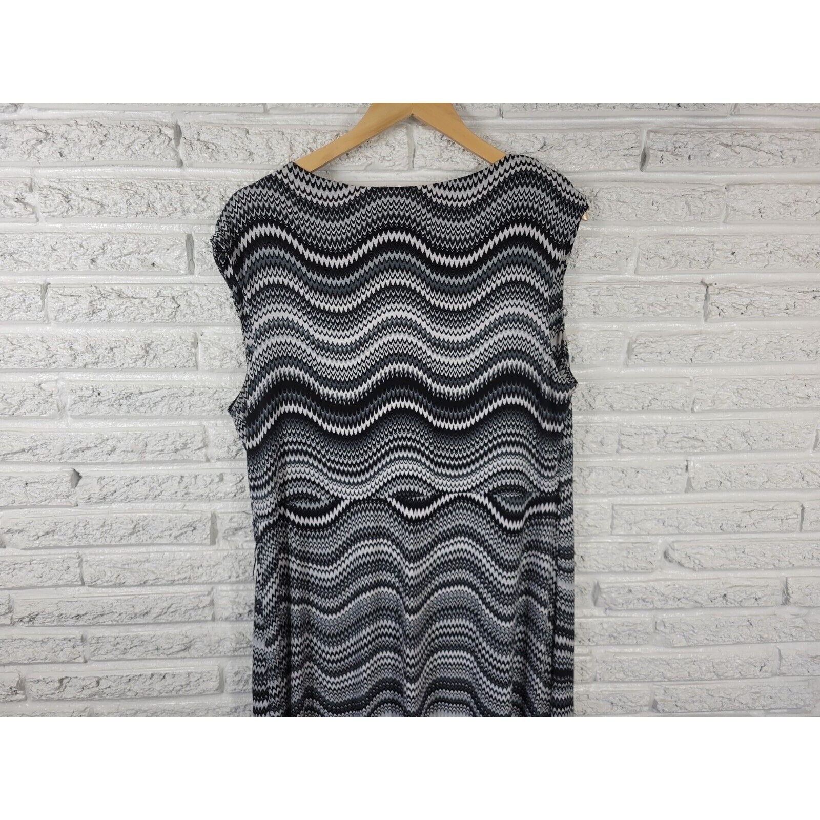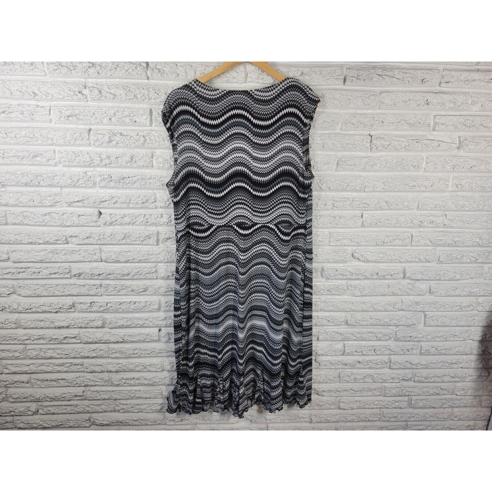 Glamour Womens Dress 18W Sleeveless Sheath Black Geometric Poly Blend Ruffle