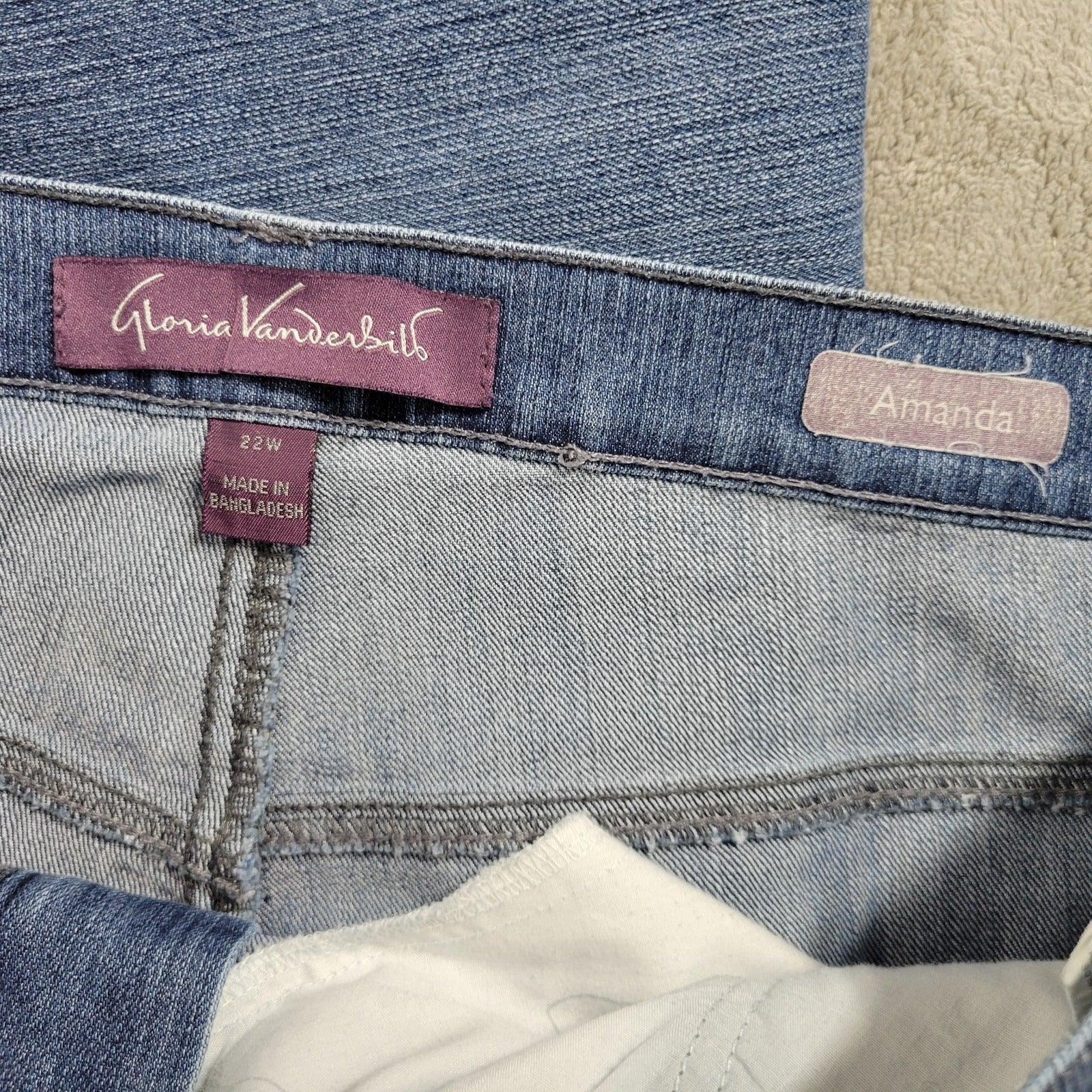 Gloria Vanderbilt Amanda Womens Jeans 22W Plus Medium Blue Denim Zip Fly Comfy
