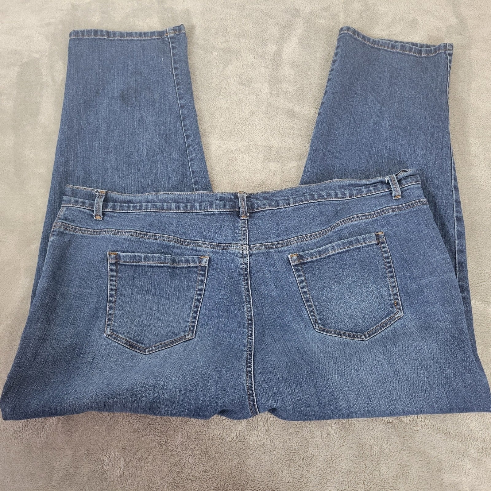 The Gloria Vanderbilt Amanda Women's Jeans in size 24W Plus feature a straight leg fit in a classic dark blue denim color. Made from a comfortable cotton blend fabric with added stretch, these jeans have an elastic waist for a personalized fit. With a 5-pocket design, these machine washable jeans are suitable for all seasons and come in a regular fit, making them a versatile and stylish addition to any woman's wardrobe. The Gloria Vanderbilt Amanda jeans are a timeless choice for those looking for both fashion and comfort in their clothing.