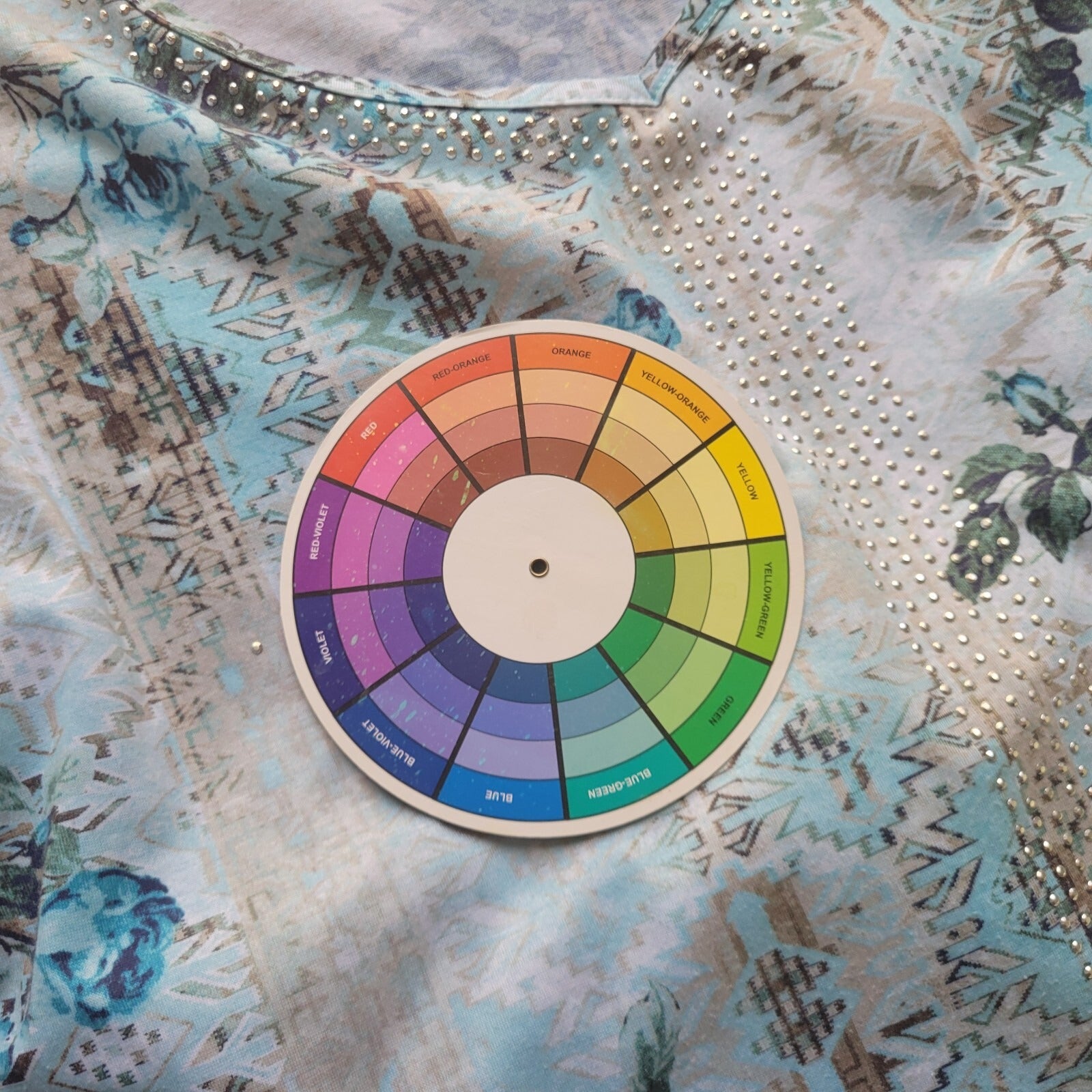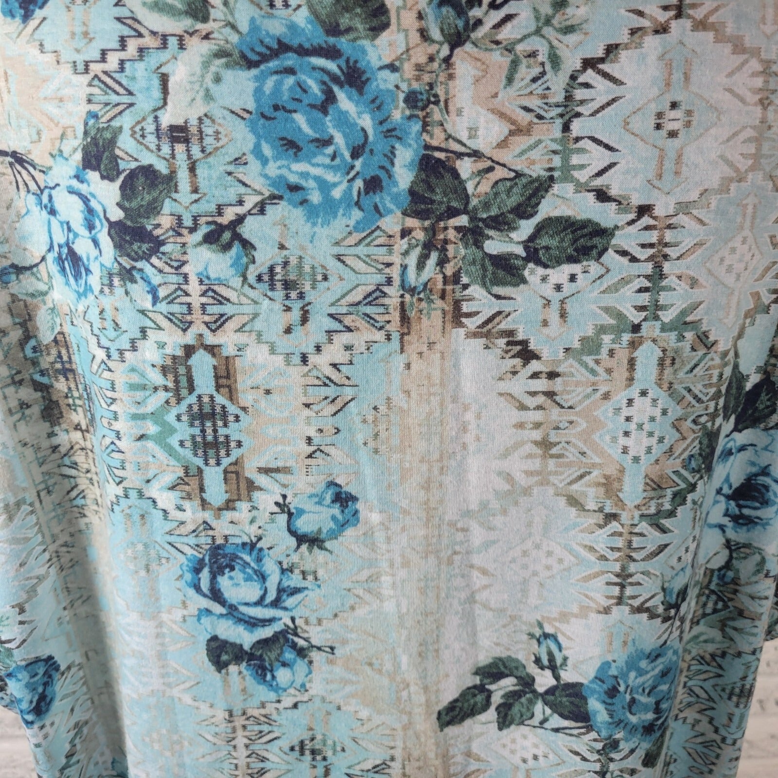 Gloria Vanderbilt Womens Top 1X Tee Short Sleeve Blue Roses Poly Blend Studded