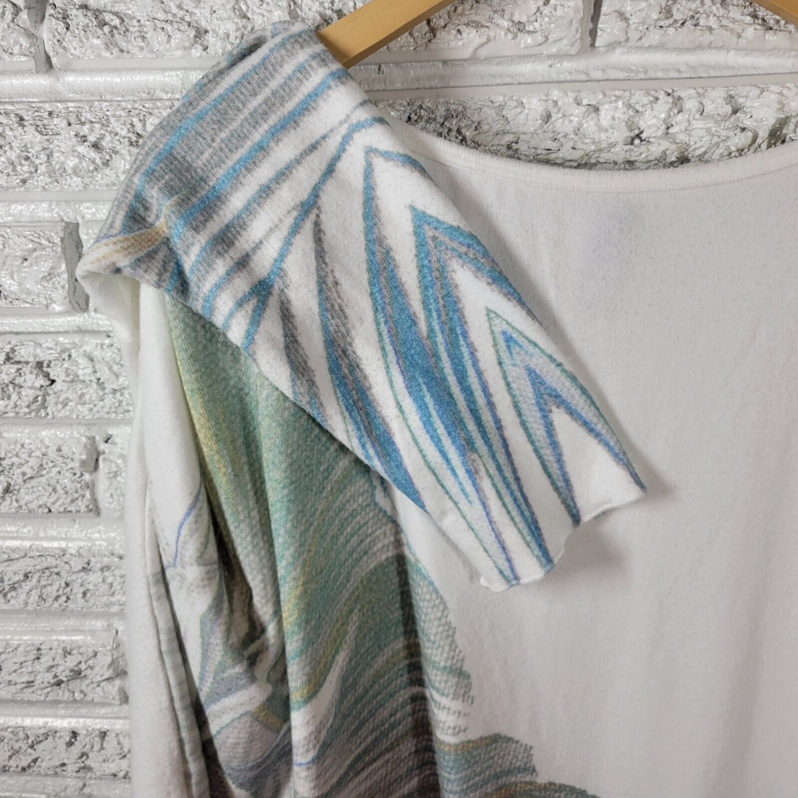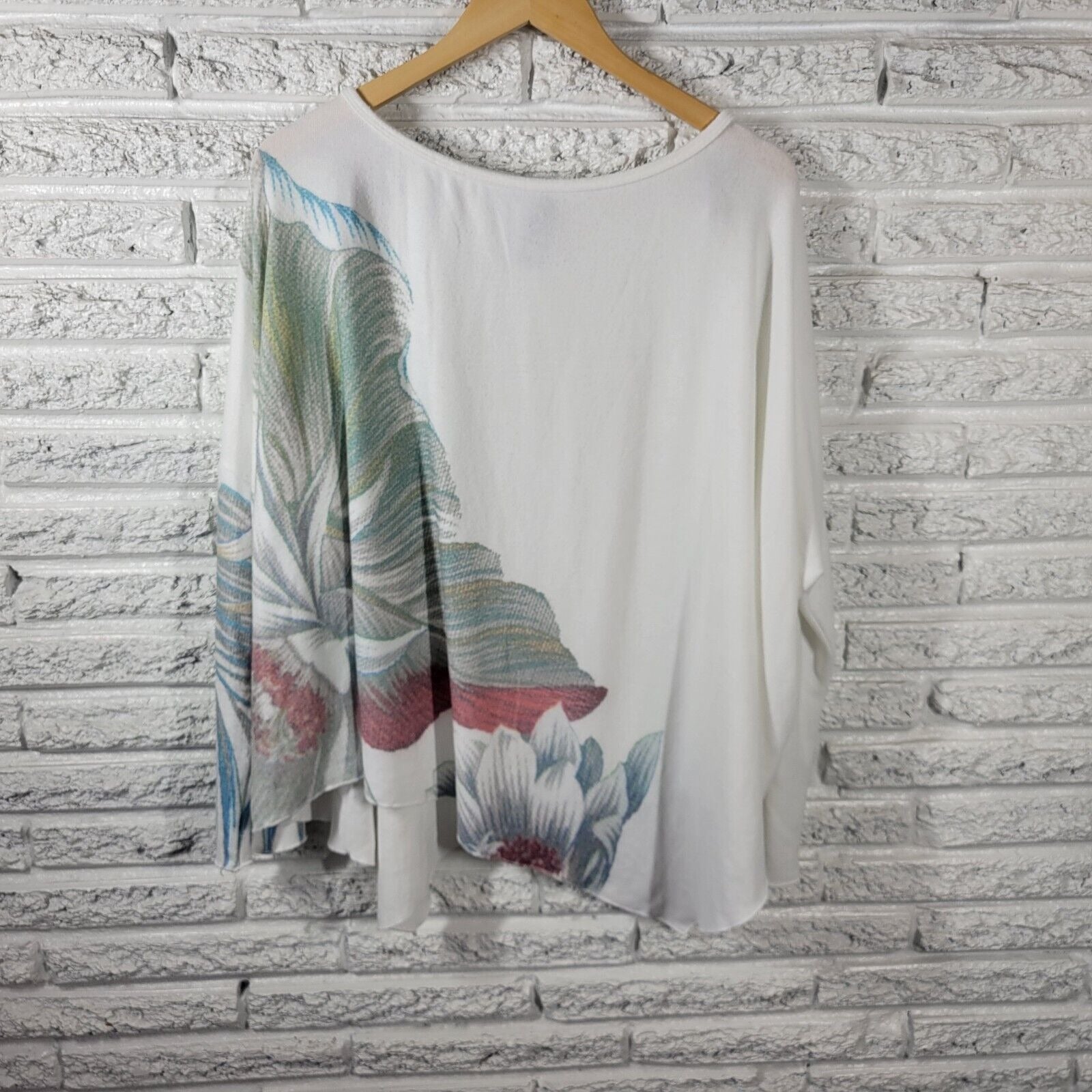 GO Couture Women Top Extra Large XL Oversized Long Sleeve Blue Green Floral Soft