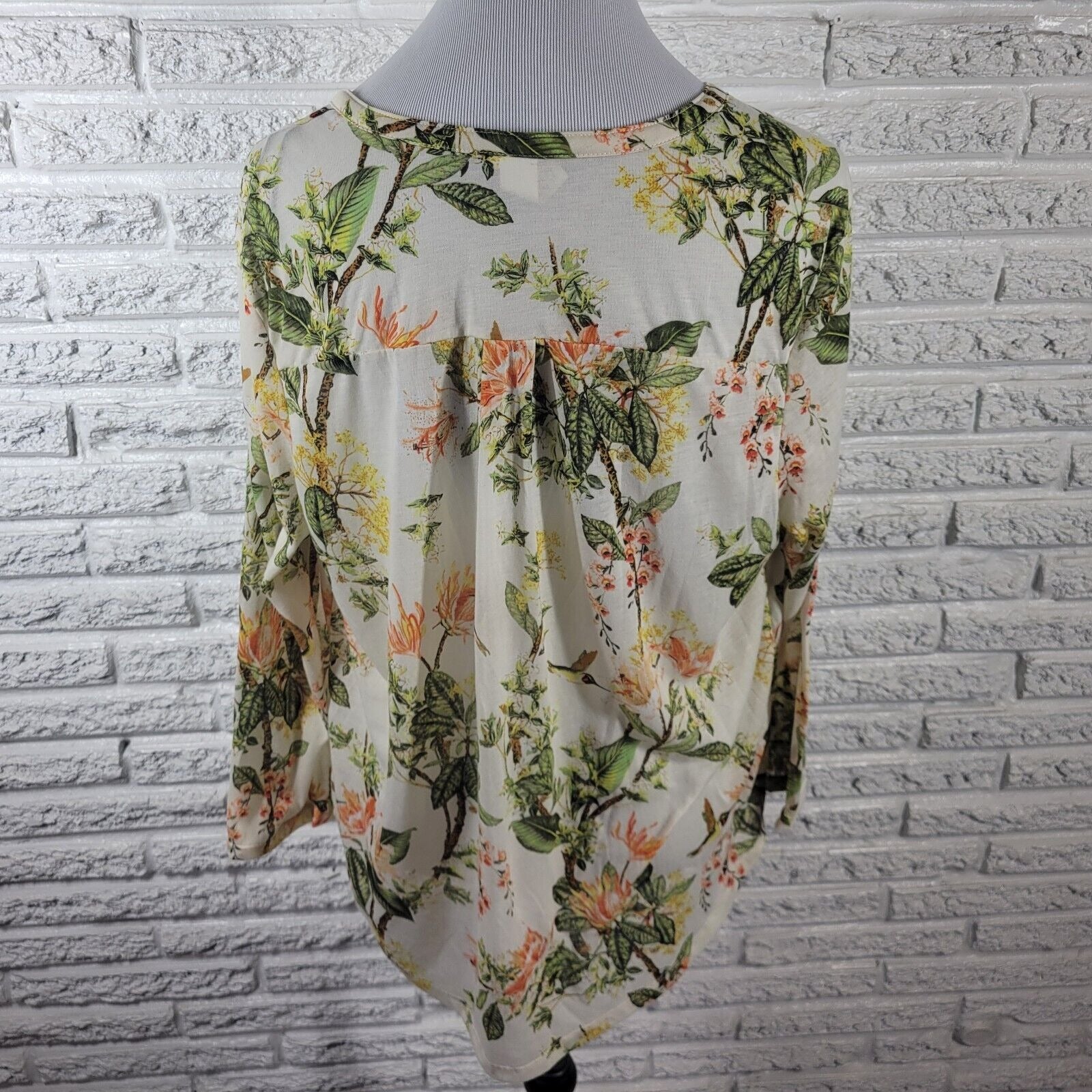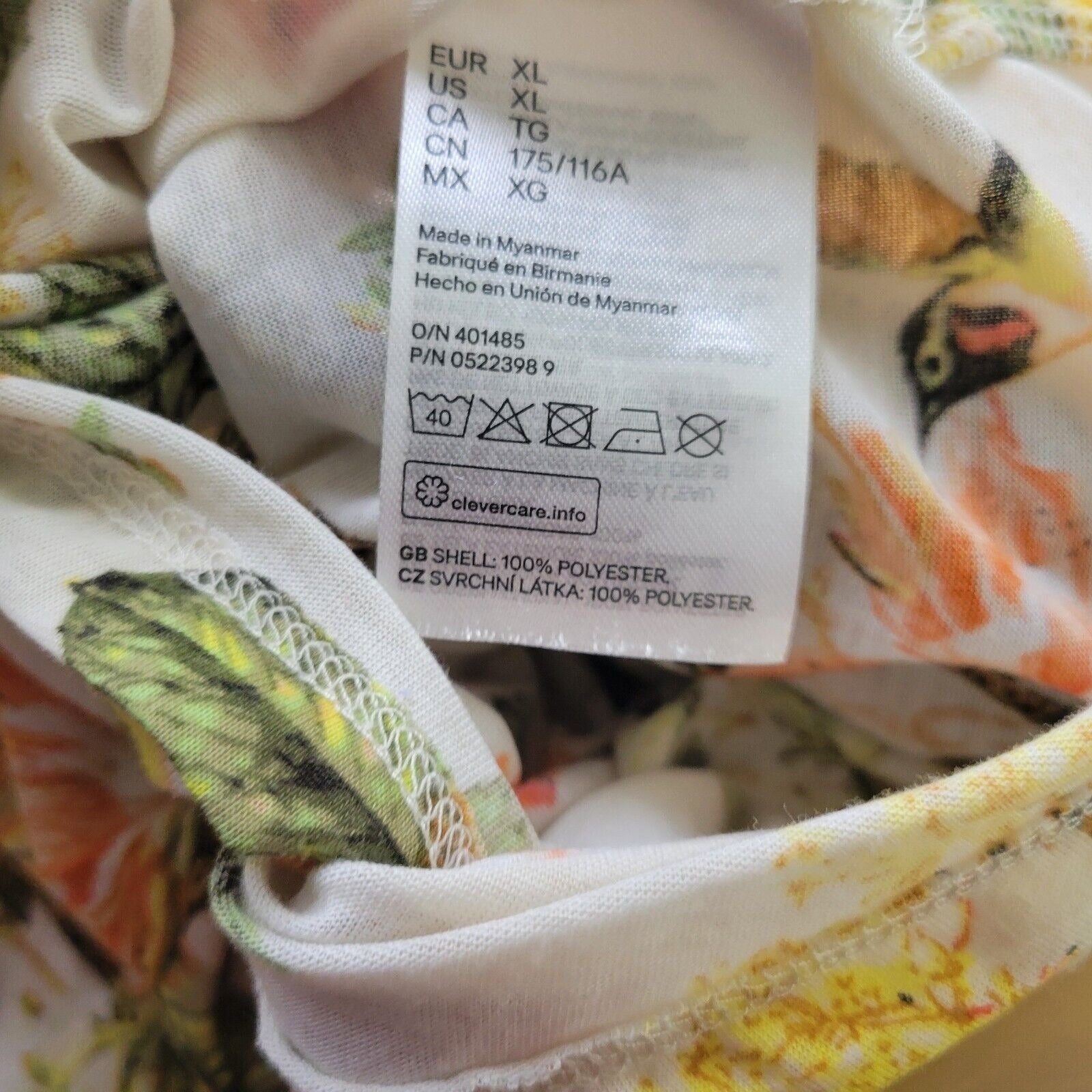 H & M Womens Top Extra Large Long Sleeve Green Yellow Floral Quarter Button Poly