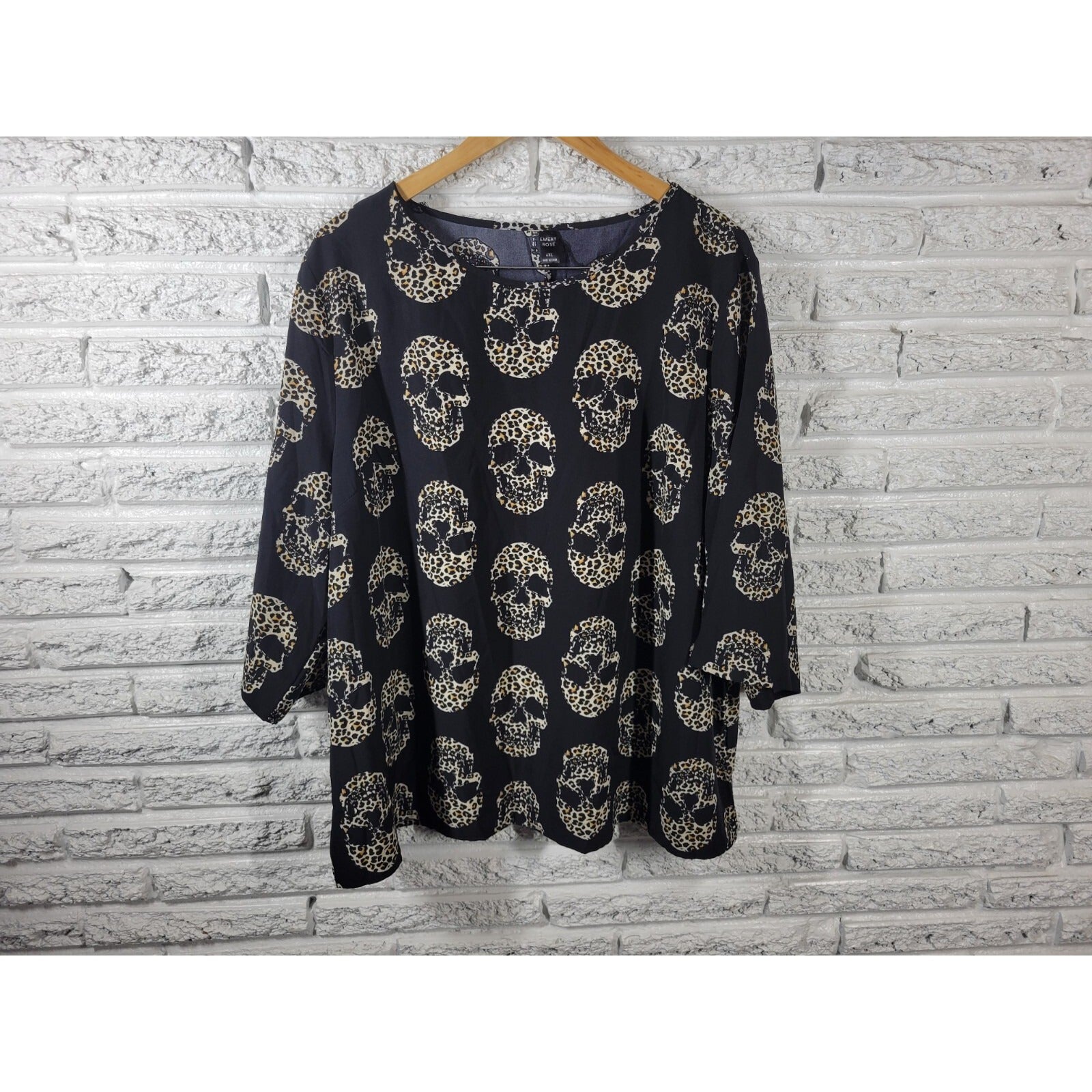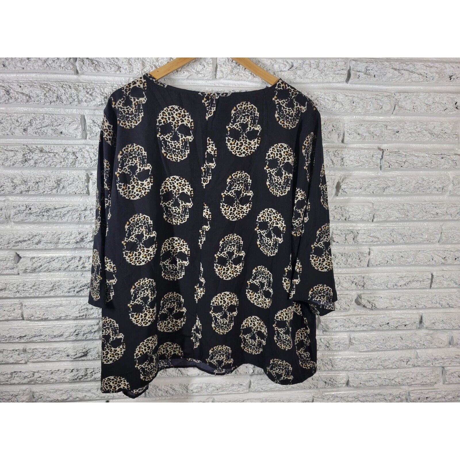Halloween Emery Rose Womens Top 4XL Skulls All Over Animal Print Polyester Comfy