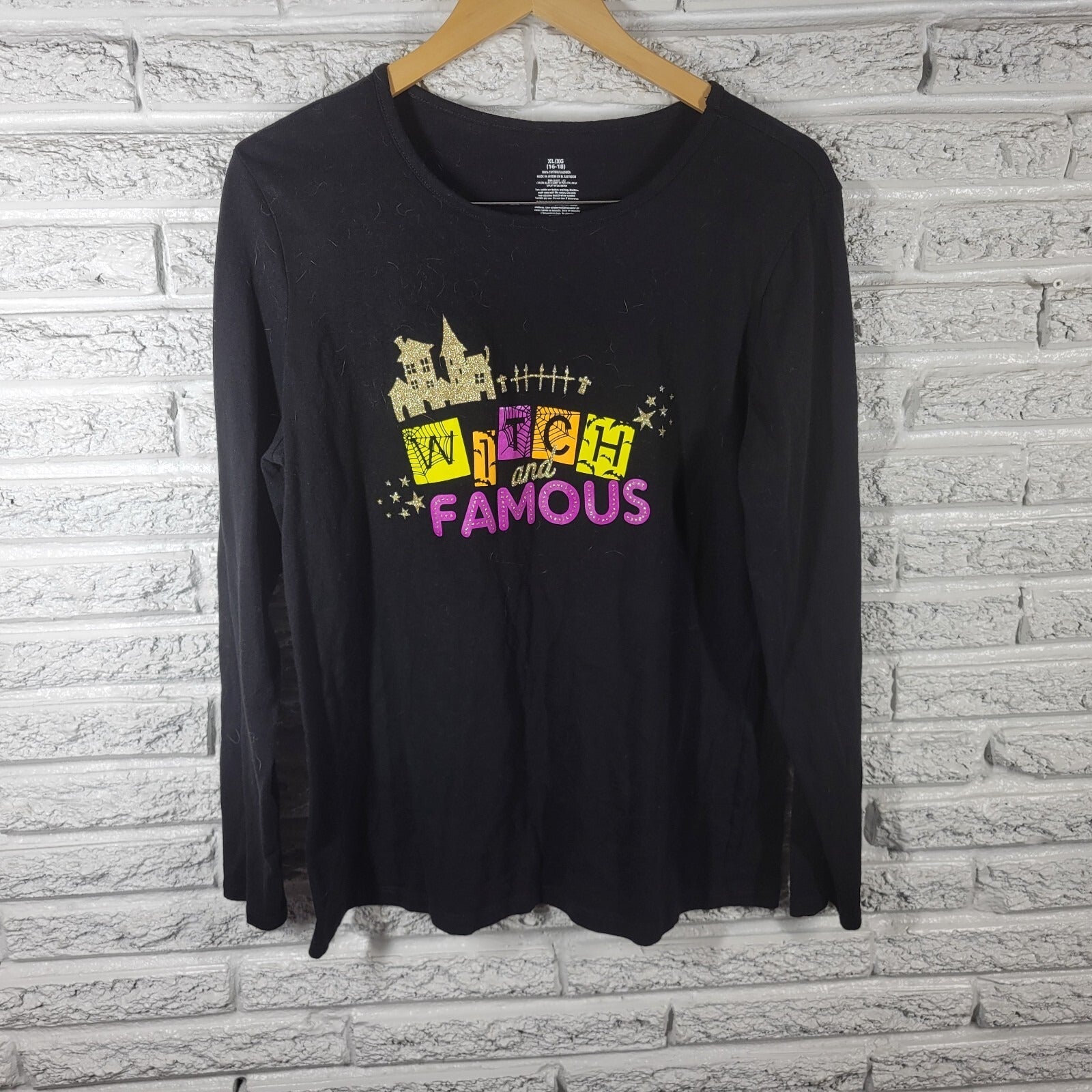 Halloween Womens Top Extra Large XL 16 18 Tee Witch Famous Black Wicked Glitter