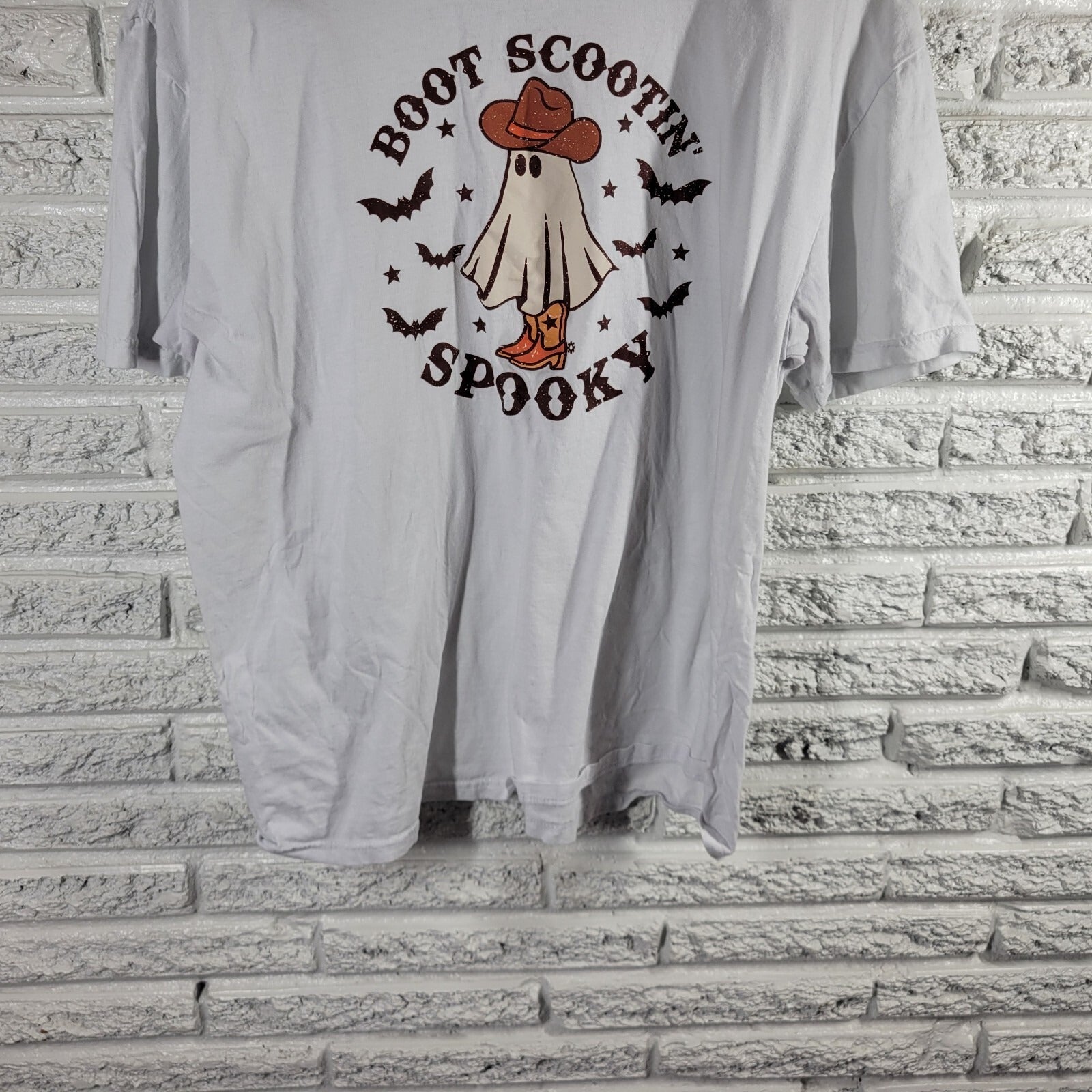 Halloween Womens Top Extra Large XL Short Sleeve Brown Cotton Spooky Boot Scoot