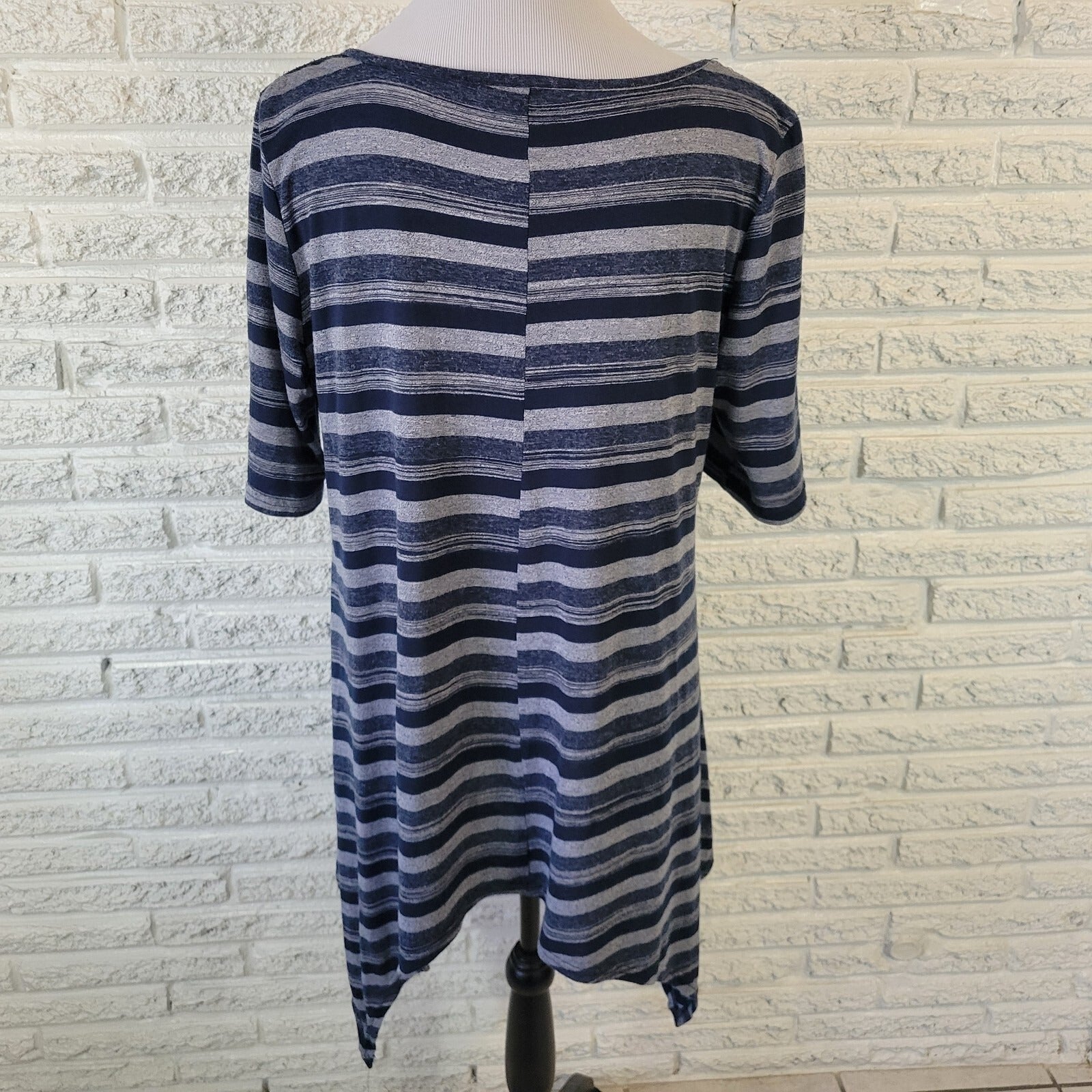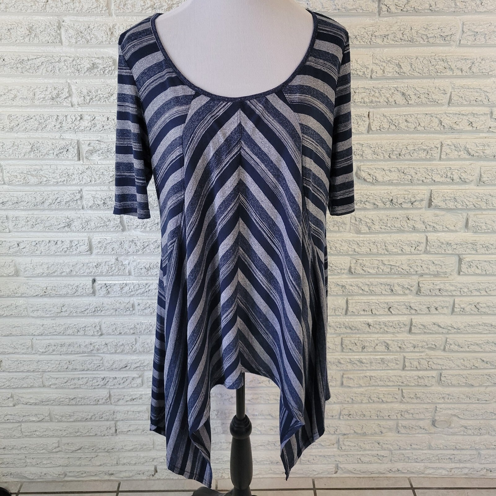Hazel Haze Women Top XL Tee Blue Gray Stripe Asymmetric Lightweight Casual Comfy