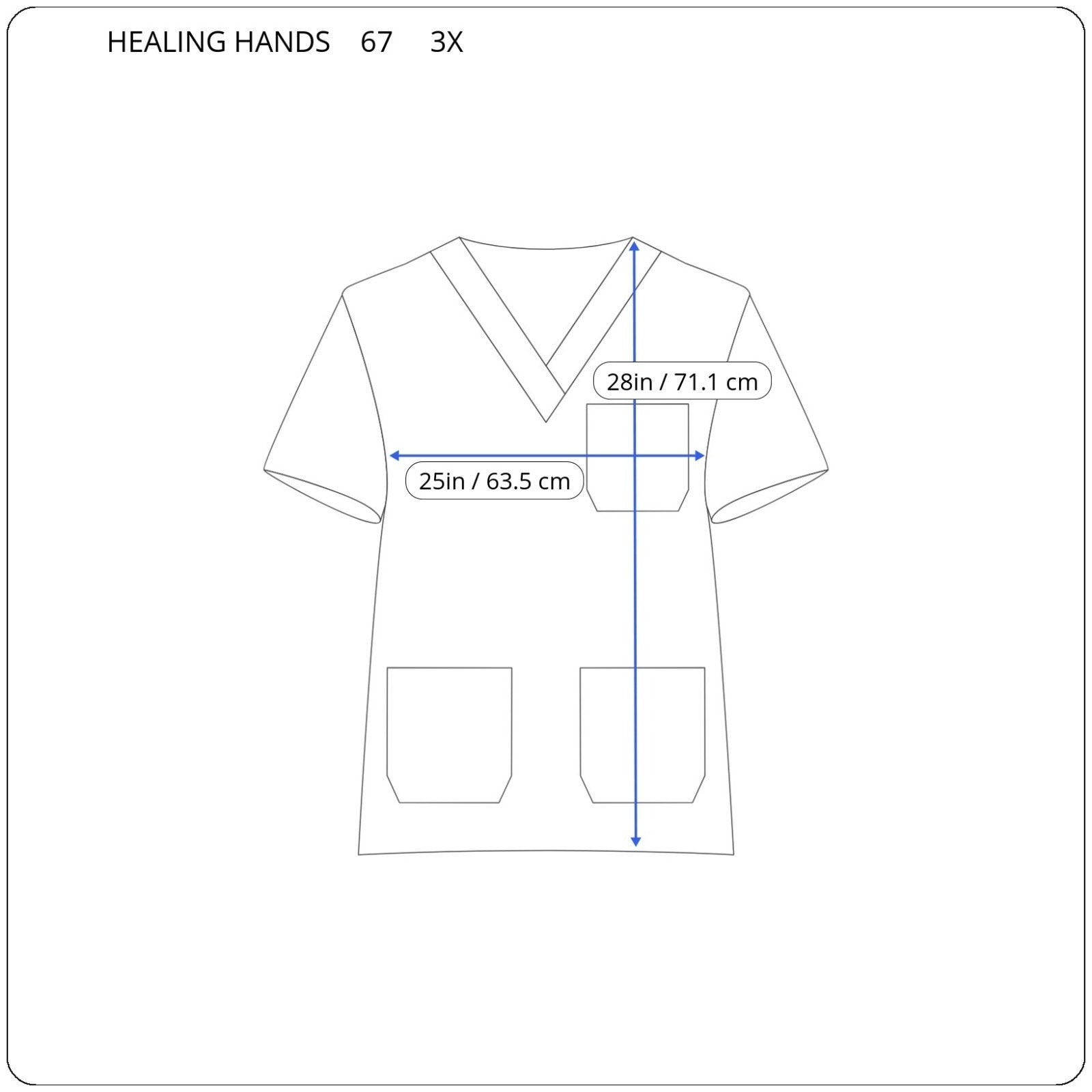 The Healing Hands Unisex Scrub Top in 3X Plus size is a stylish and comfortable choice for medical professionals. Made from a polyester blend in a beautiful blue/black watercolor pattern, this scrub top features a convenient pocket design for easy access to essentials. With its unisex gender-neutral design, this top is a practical and attractive addition to any medical staff's wardrobe.