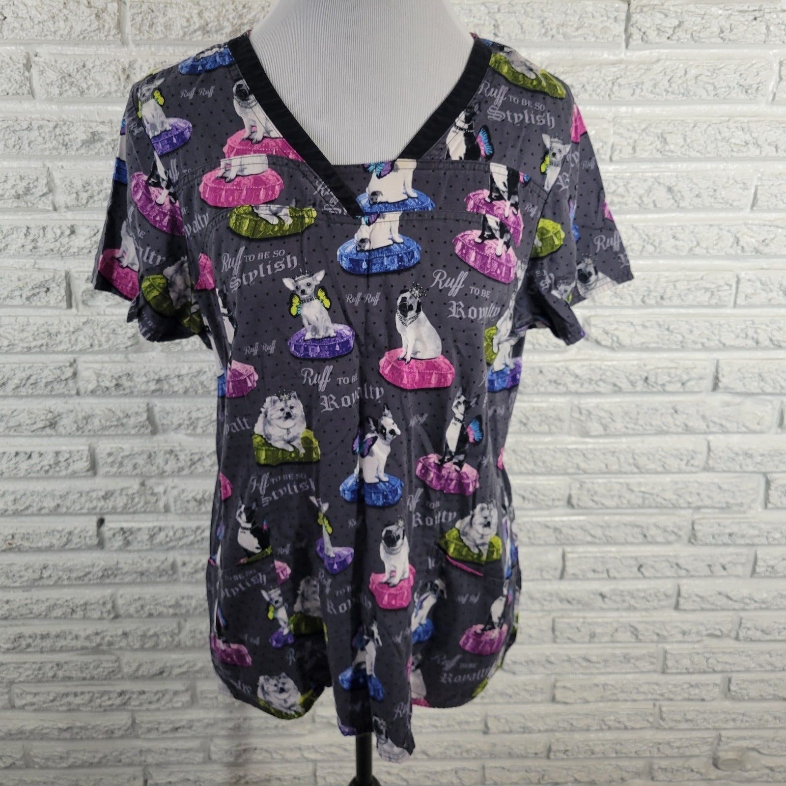 Heartsoul Unisex Scrub Top XL Short Sleeve Puppies Dogs Medical Vet Tech Cotton